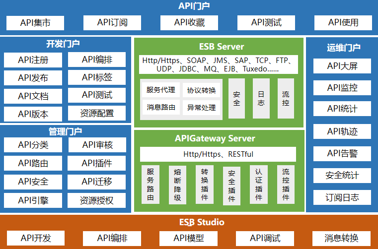 ESB Governor提供API门户、开发门户、管理门户、运维门户四大门户,实现对API的全生命周期管理。