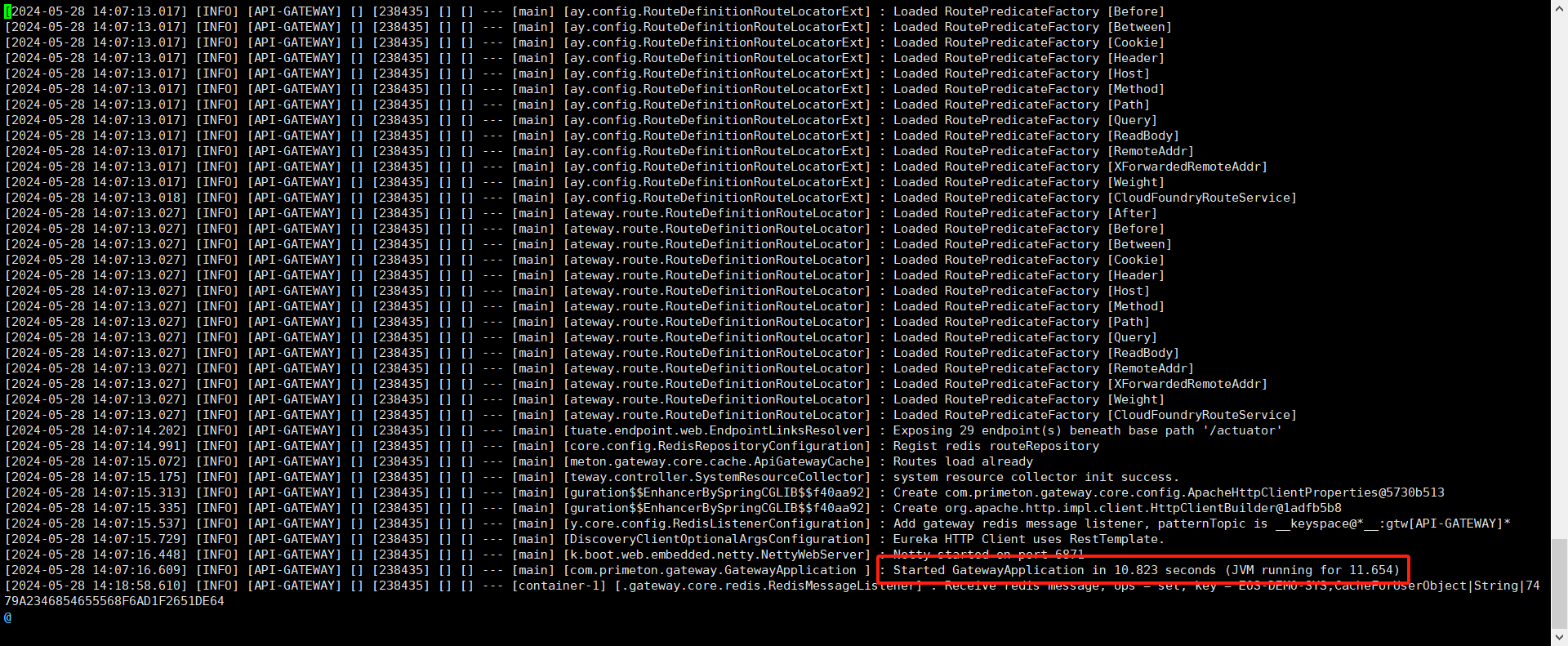 启动成功后,控制台会显示具体日志,如下图所示:。