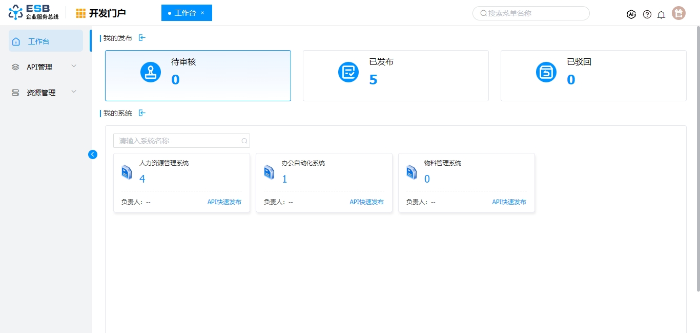 1. 使用manager账号(默认密码:000000)登录系统,点击开发门户,进入“工作台”页面。