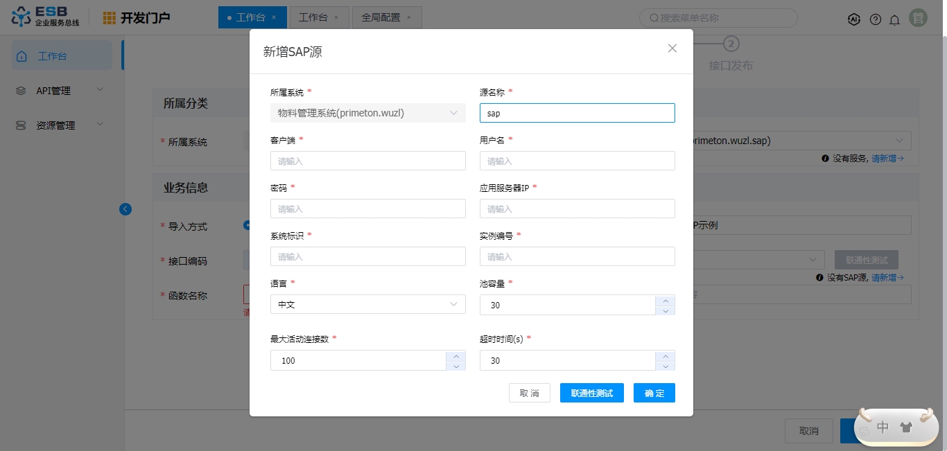 SAP源 SAP系统连接配置