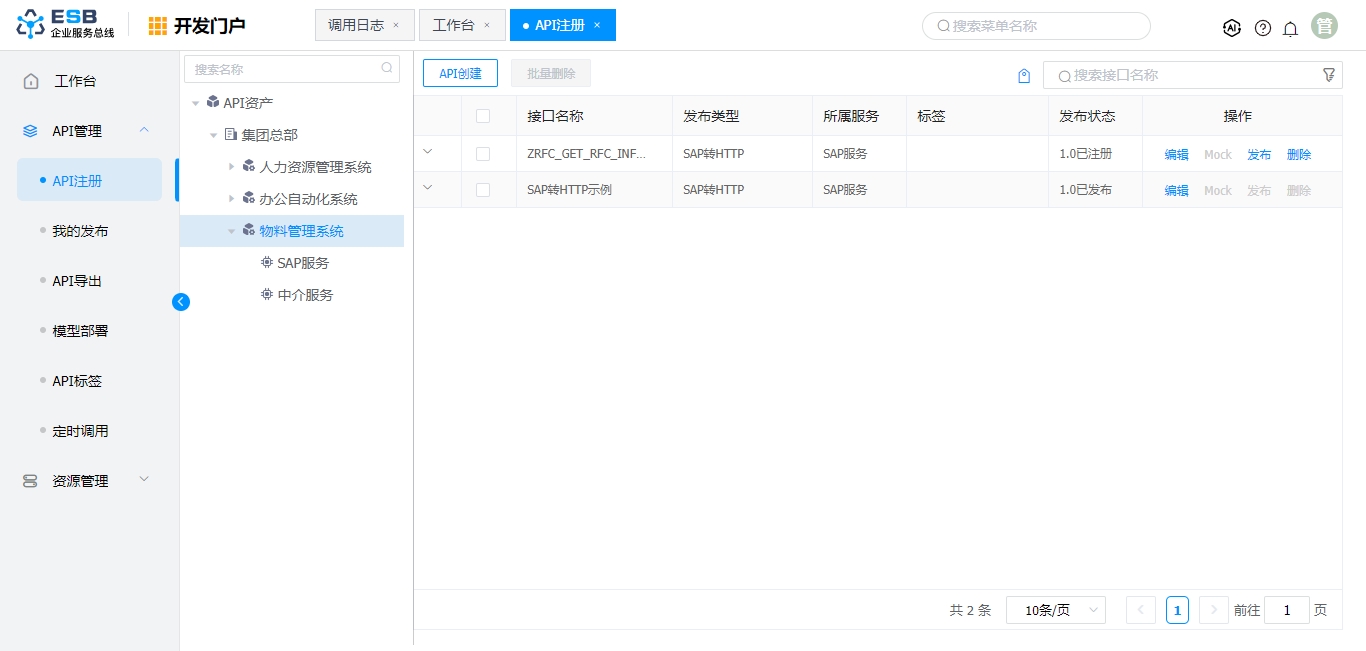 点击菜单“API管理-API注册”,在"API资产"中选择导入时所选系统,可看到导入的函数,此时函数状态为已注册。