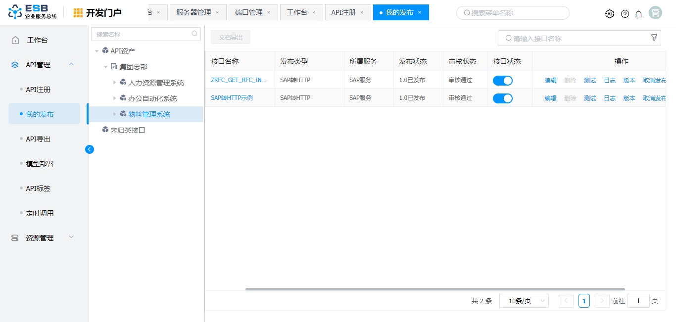 点击”SAP转HTTP“按钮,进入”SAP发布“页面。