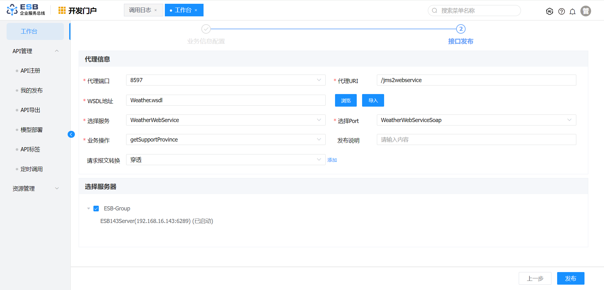 6.点击“发布”,接口发布成功