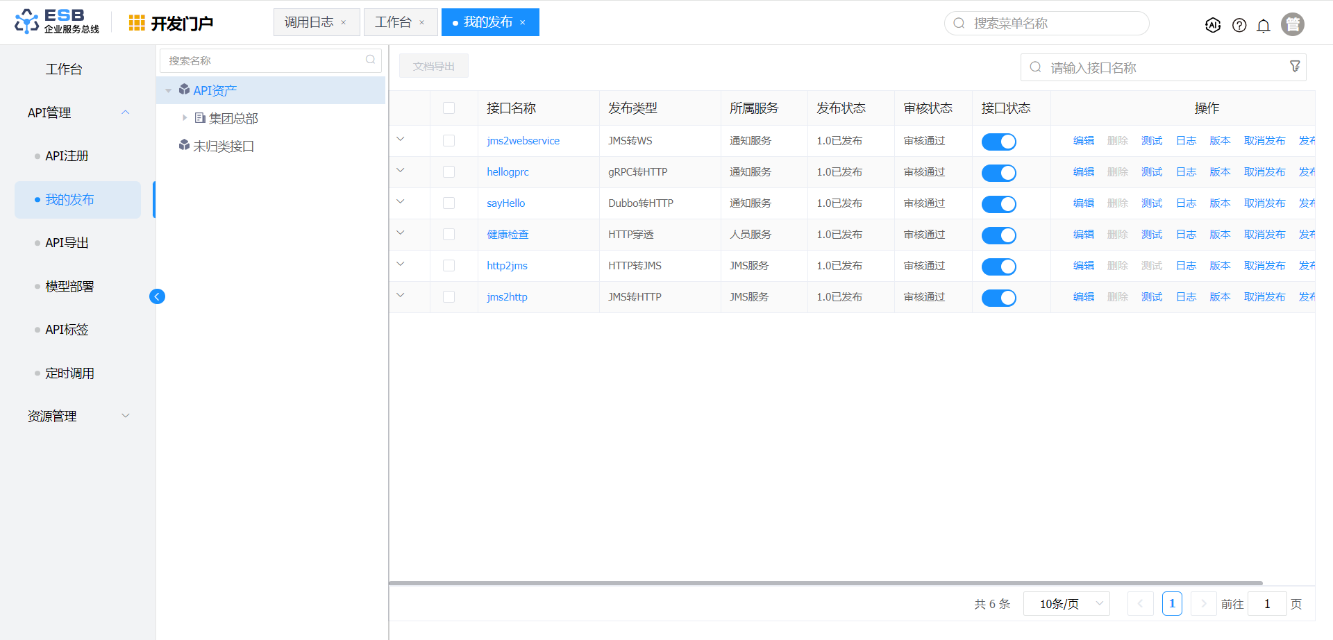 1.在"API管理">"我的发布"页面,可查看刚创建接口的发布记录