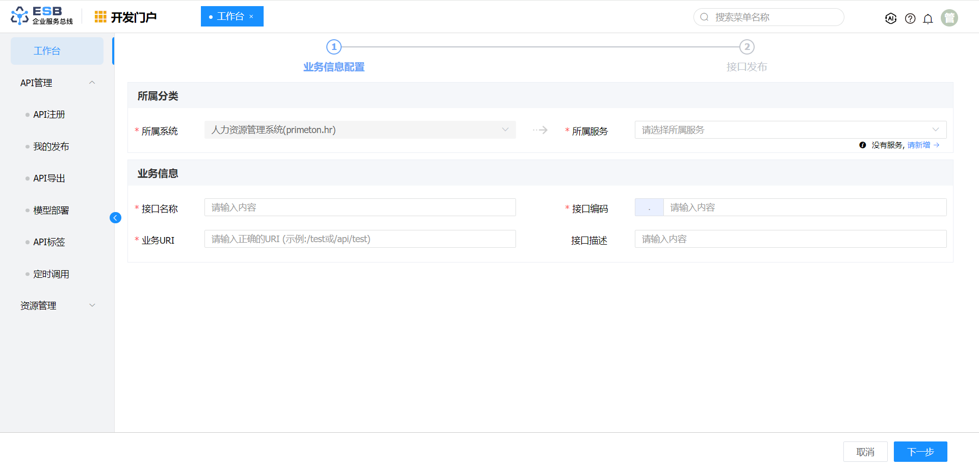 1.使用manager账号(默认密码:000000)登录系统,点击开发门户,进入“工作台”页面。