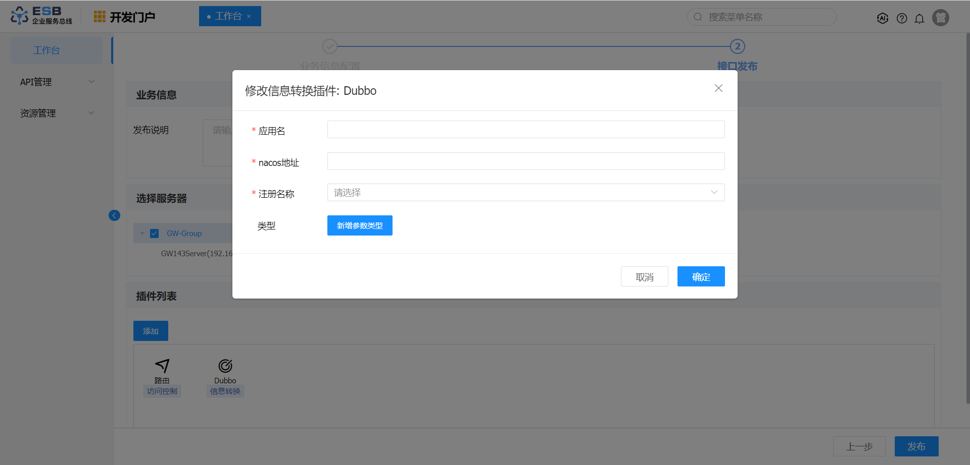 点击“Dubbo”插件,填写相关参数。