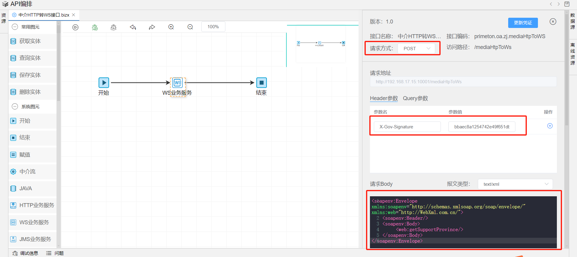 打开测试界面,填写请求内容body体填写如下xml内容。