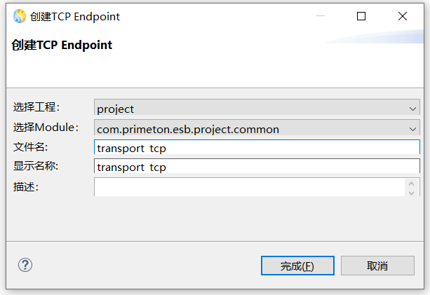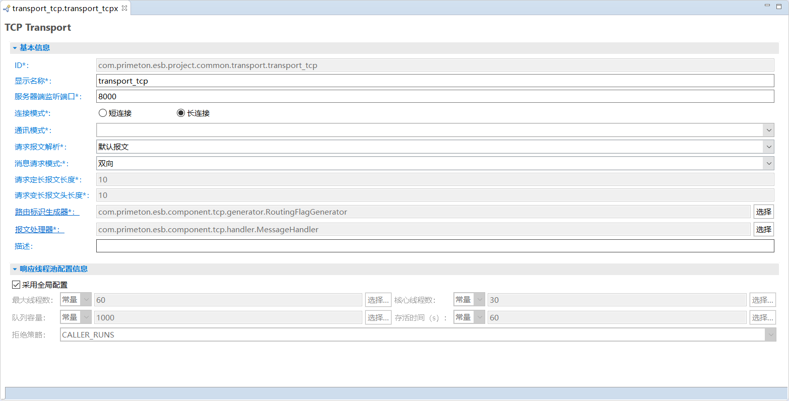 - 文件名:用于存储TCP Transport配置的文件名。需要保证在ESB工程中唯一。