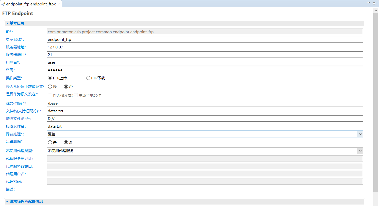 • 文件名:用于存储FTP Endpoint配置的文件名。需要保证在ESB工程中唯一。