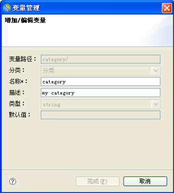 修改分类a. 选择"category"分类,点击"编辑"按钮,弹出"变量管理",如下: