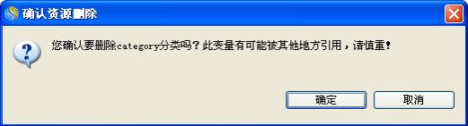 a. 选择"category"分类,点击"删除"按钮,弹出消息提示框,如下:
