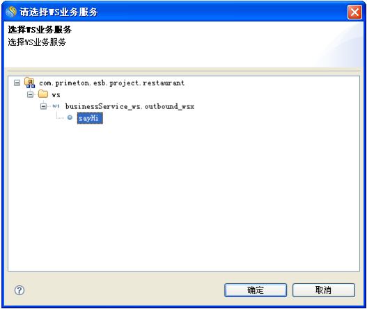 在"设置对话框"窗口中点击业务服务后面的"浏览"按钮,弹出"选择WS业务服务"窗口,选择对应的WS业务服务的操作名,点击"确定",如下图所示: