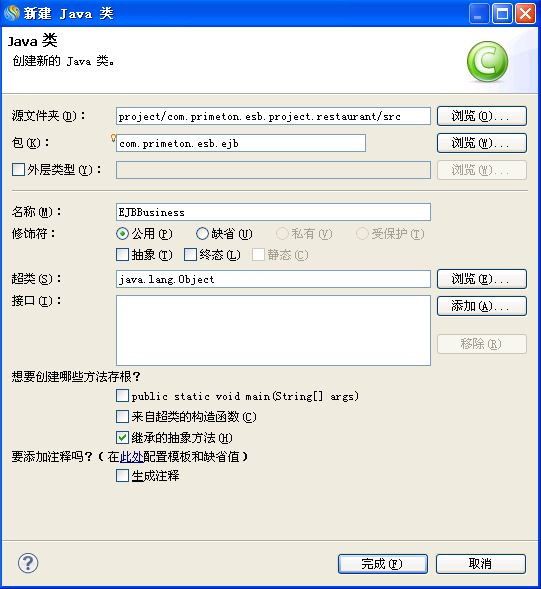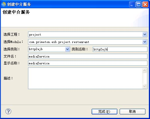 在"创建EJB业务服务"向导中,输入相应的信息,点击"完成"按钮,完成EJB业务服务的创建,如下图所示。