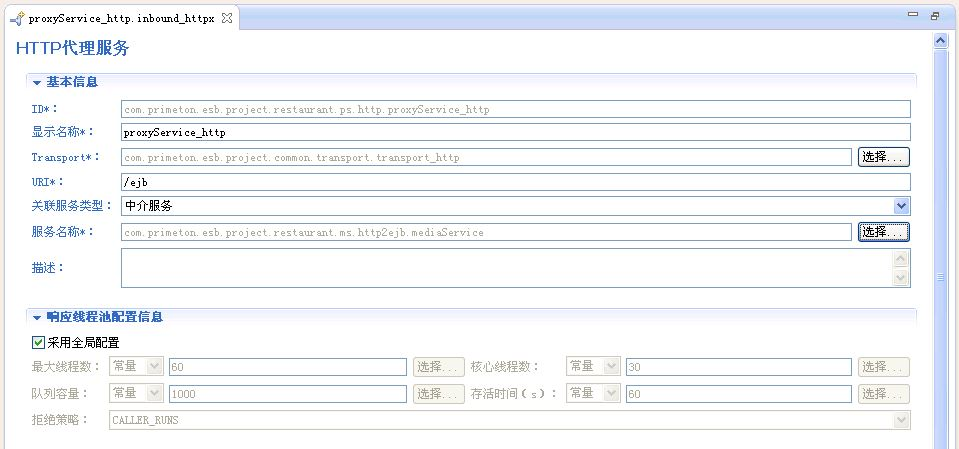 在HTTP代理服务的编辑界面中,需要输入"UrlPattern"并设置引用的中介服务,如下图所示。