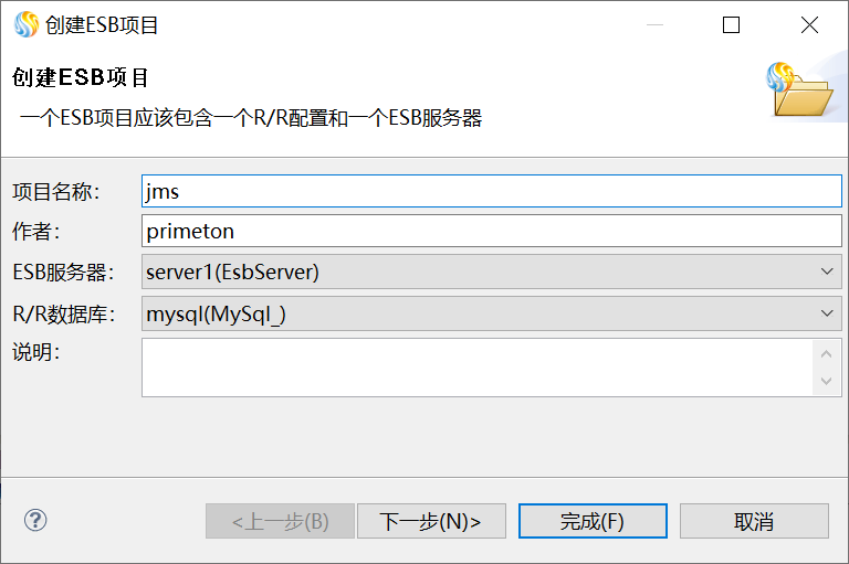 在打开的“创建JMS代理服务”对话框中,输入类别信息,如下图所示。