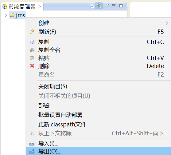 在资源管理器中,选中创建好的项目,鼠标右键单击“导出”,如下图所示。