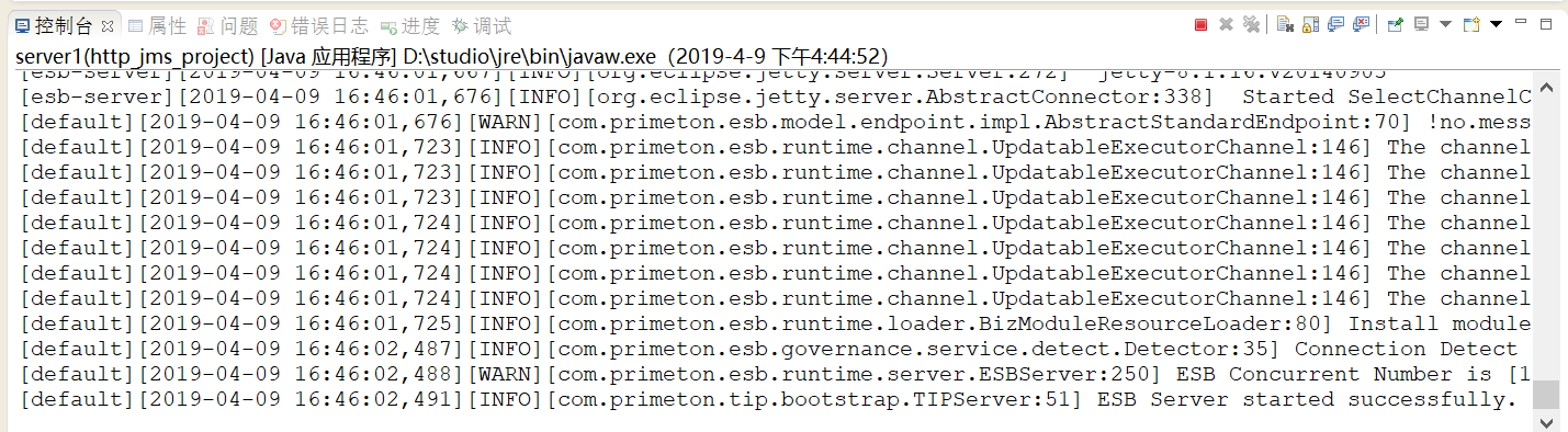 String urlString = "http://127.0.0.1:9091/HttpToJms"; //HttpToJms中介服务启动ESB Server,如下图所示。
