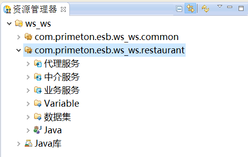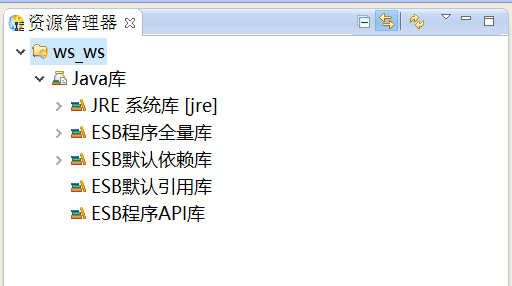 单击“完成”,系统返回ESB开发透视图,创建的项目在"资源管理器"视图中显示,如下图所示。