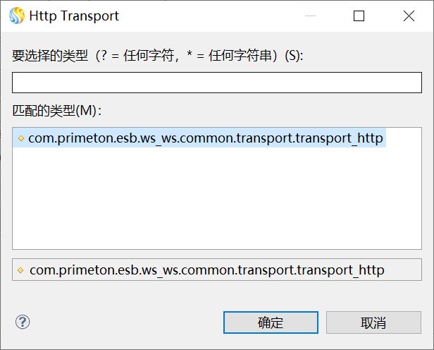 单击“完成”,在打开的“WS代理服务”的编辑界面中,单击“Transport”后面的“选择...”,弹出“Http Transport”对话框,选择之前创建的HTTP Transport,单击“确定”。如下图所示。