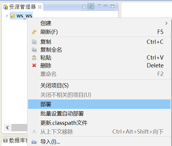 在资源管理器中,选中创建好的项目,鼠标右键单击“部署”,如下图所示。