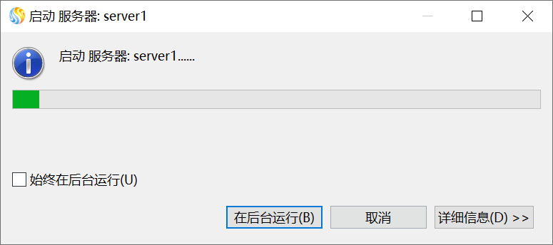 ESB Server启动时,弹出启动服务器进度窗口,如下图所示。