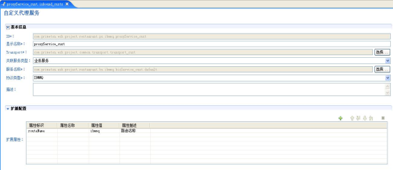 - 这里服务名称选择刚才所创建的名为:com.primeton.esb.project.restaurant.bs (opens new window).ibmmq.bizService的业务服务;