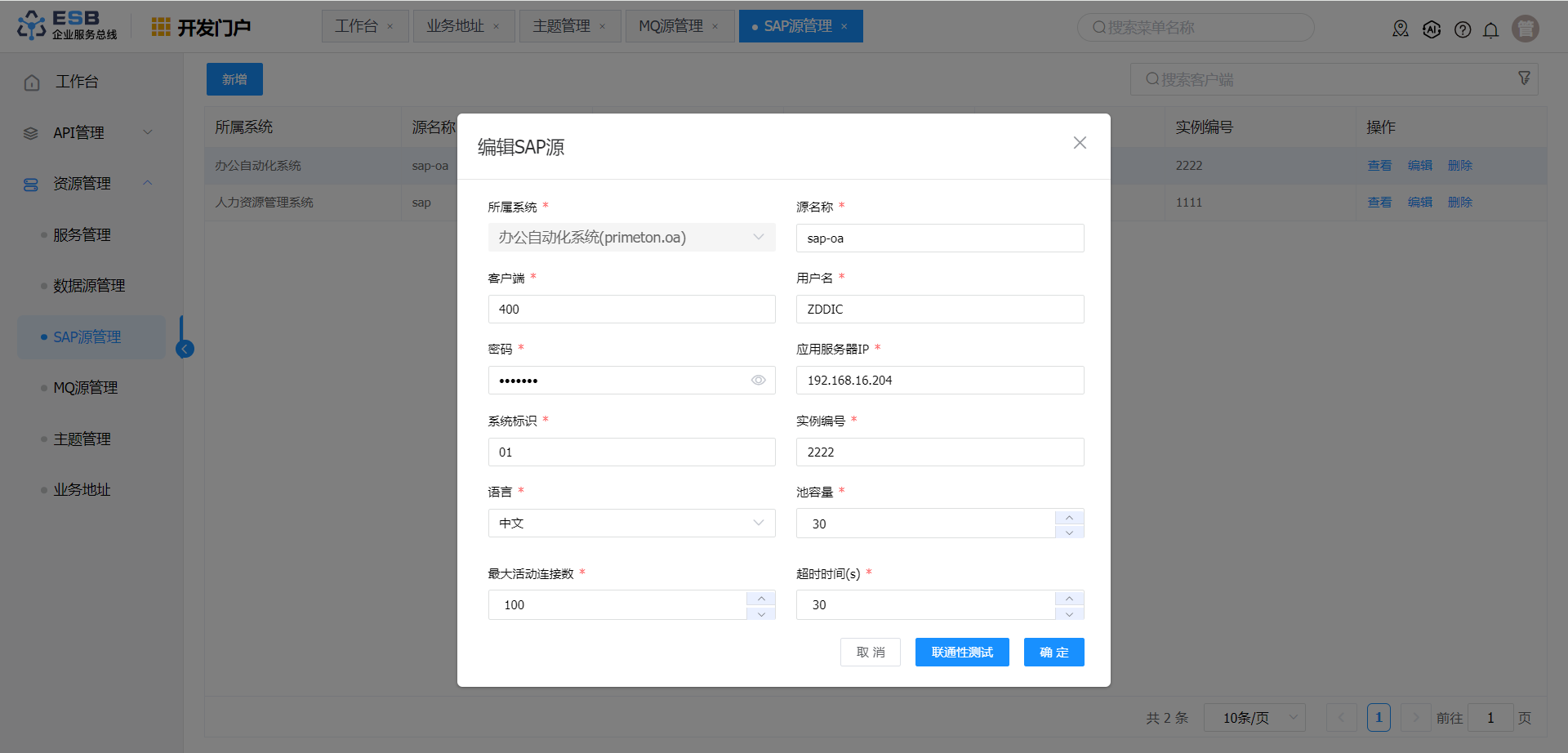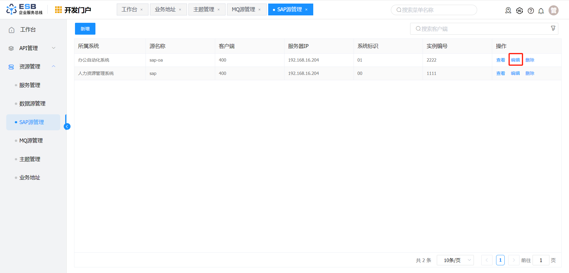 1. 在“SAP源管理”界面,选择一条需要修改的SAP源记录,点击操作列“编辑”按钮,进入“编辑SAP源”界面。