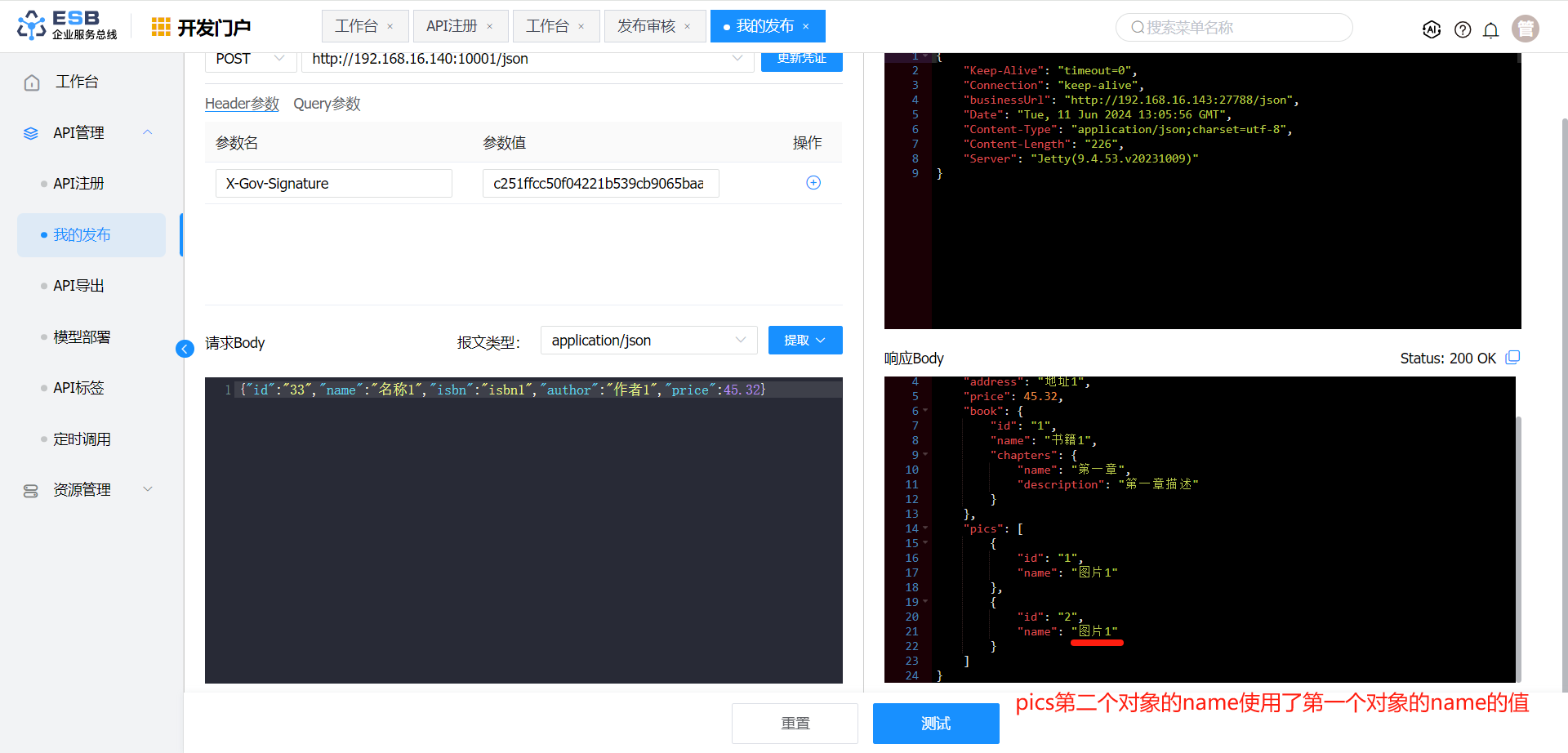 响应报文转换 报文体 $.pics[1].name $.pics[0].name 是