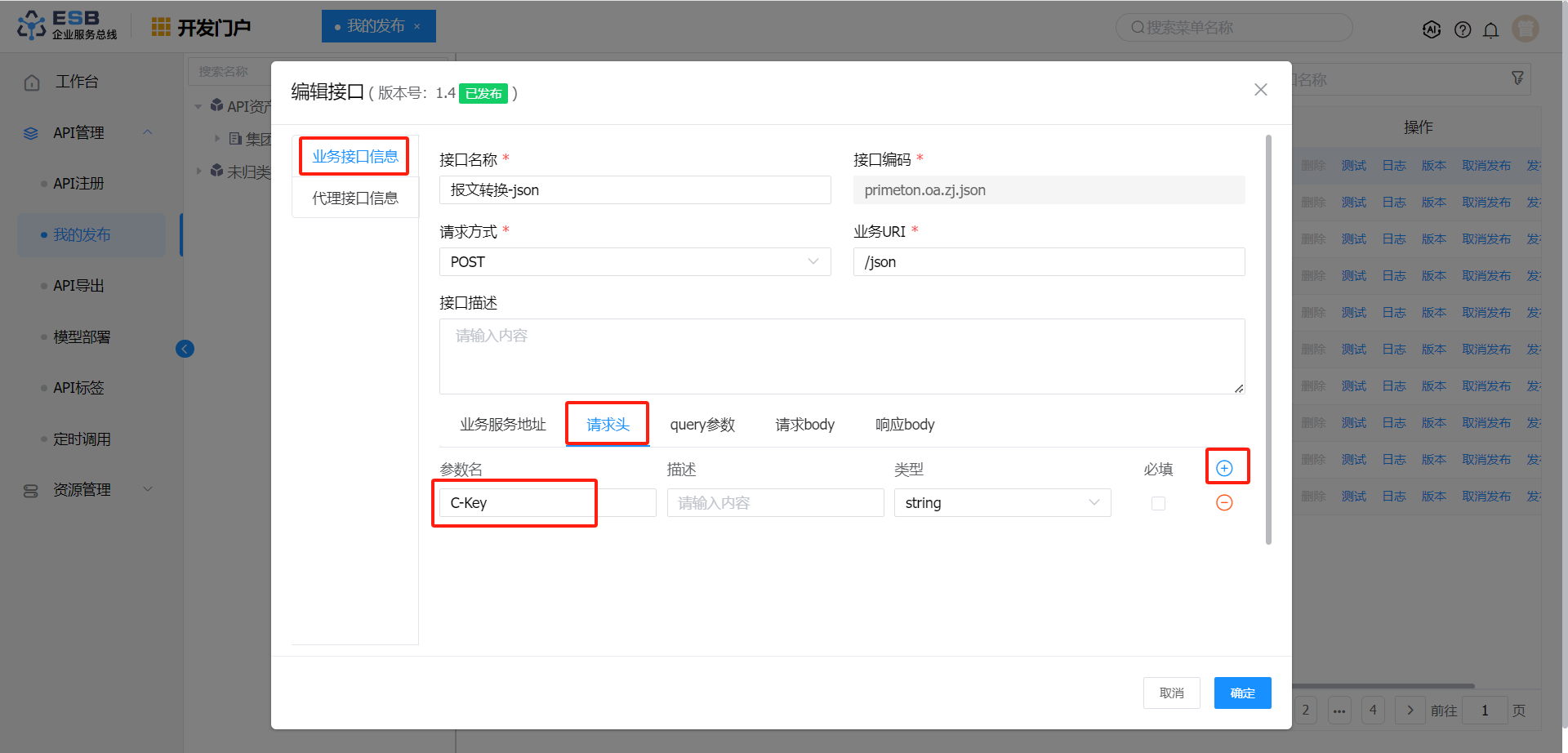 在"开发门户 > API管理 > 我的发布"页面,选择自己的接口,点击操作栏中的“编辑”按钮,即可查看到接口的详细信息。