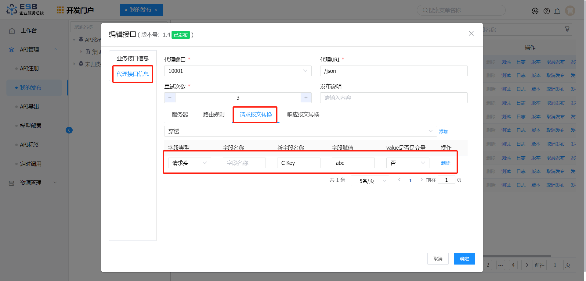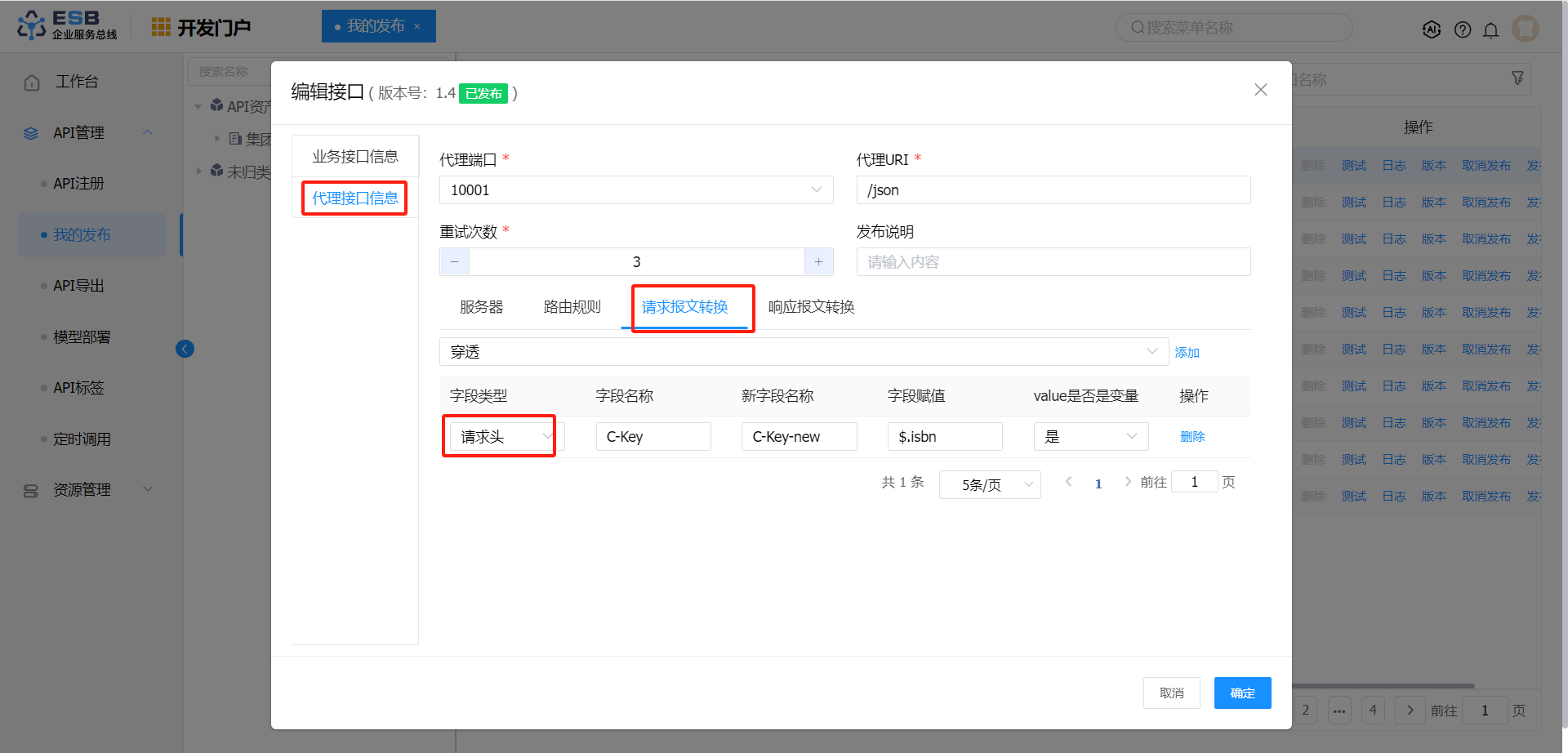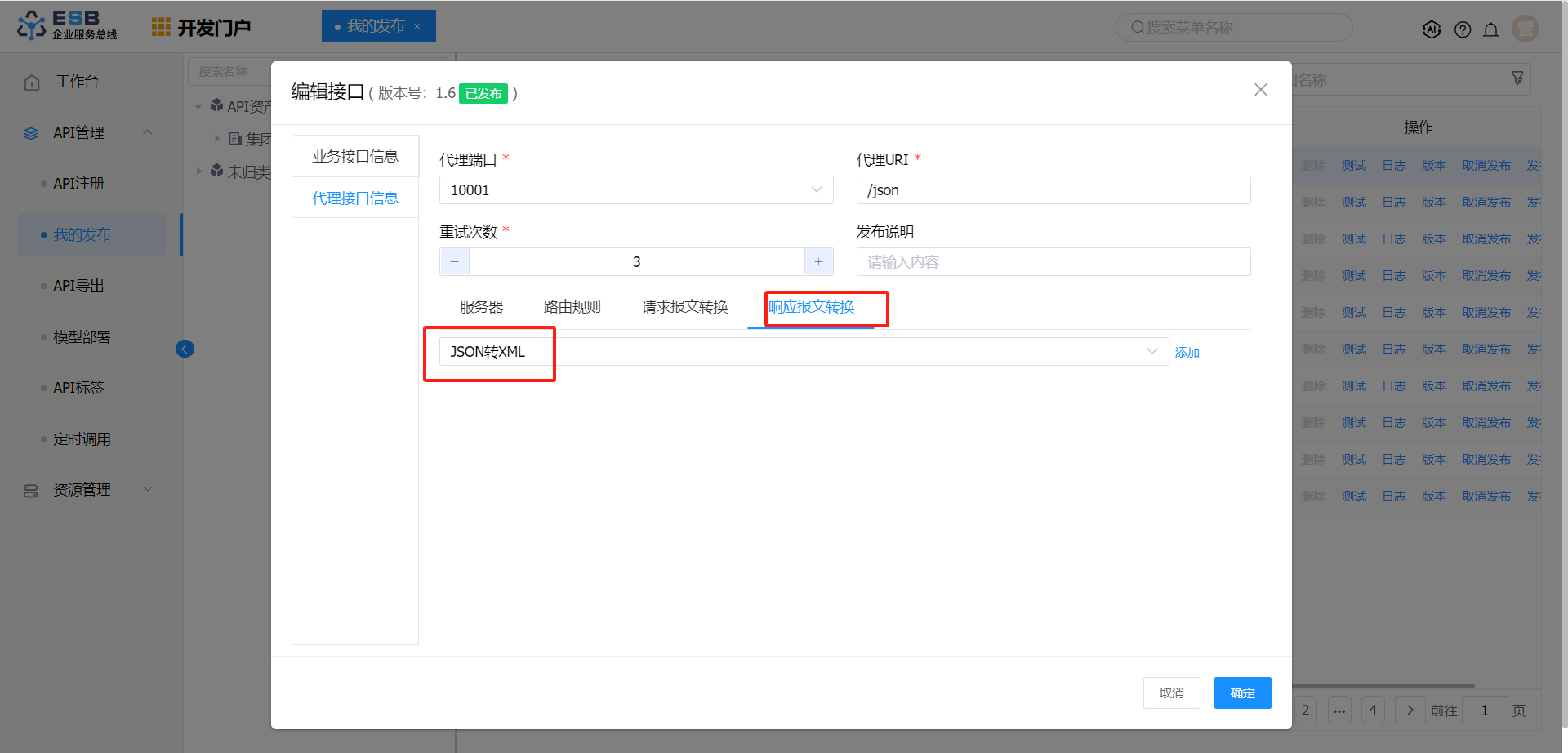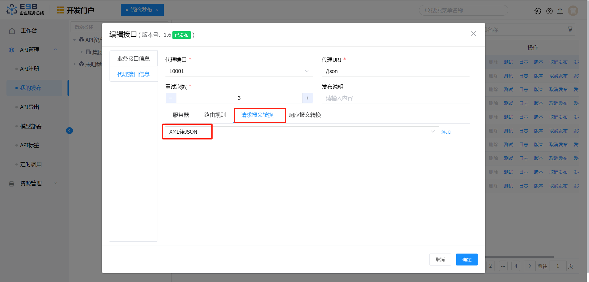 发布类型 请求报文转换 响应报文转换