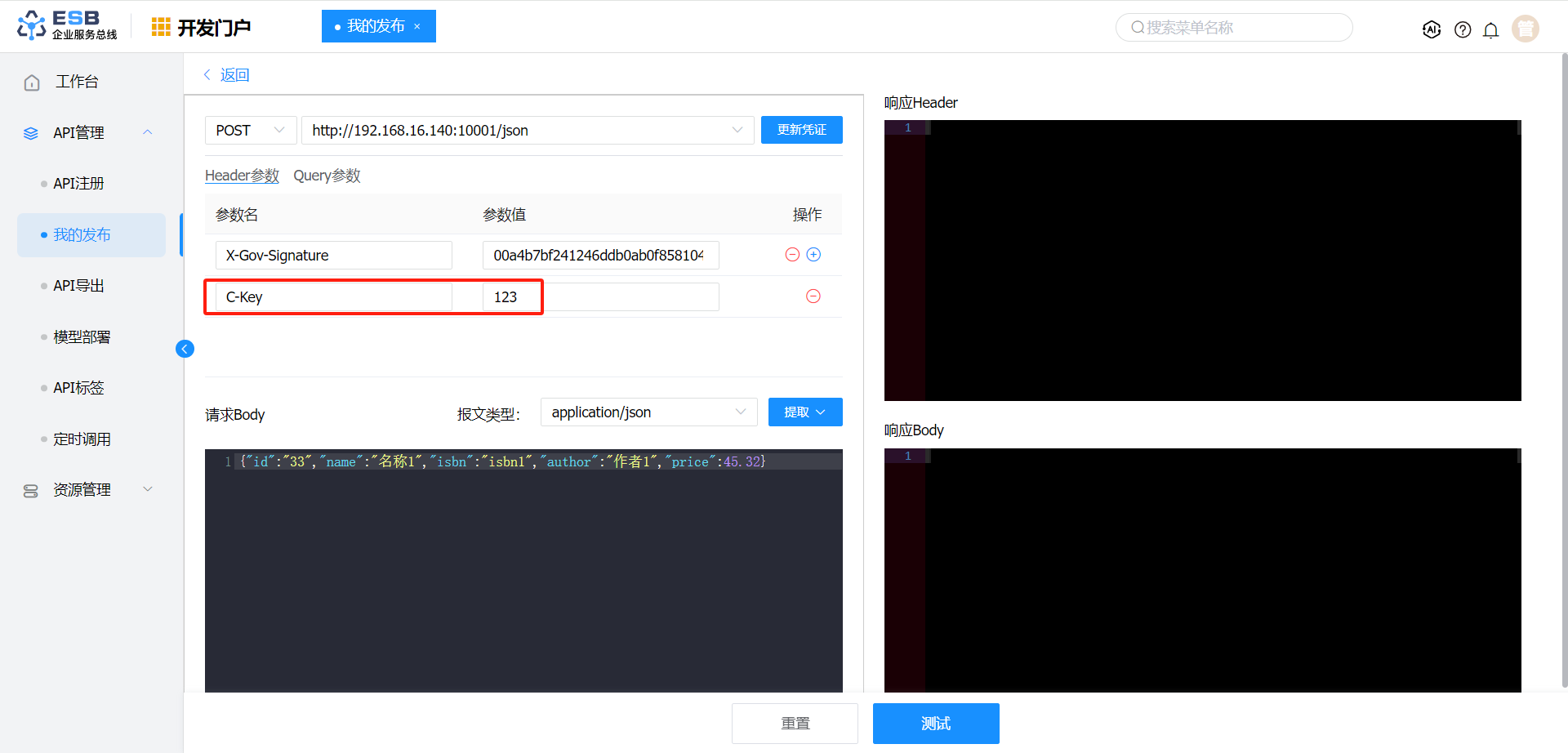 请求报文转换 报文头 C-Key C-Key-new $.isbn 是