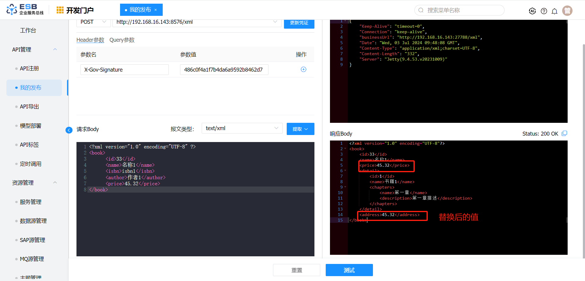 • 场景10:XML格式响应报文转换