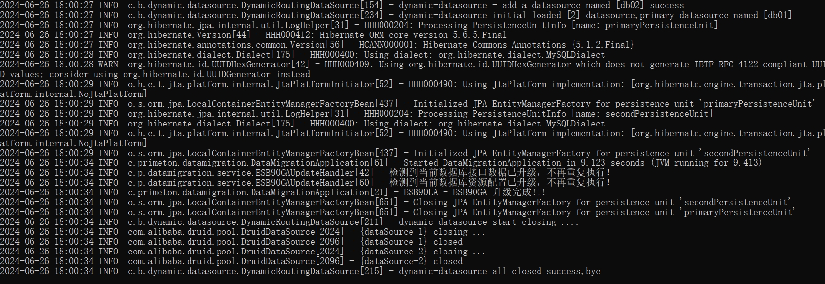 启动成功后,升级程序自动运行,日志无报错并出现如下内容,说明程序执行成功