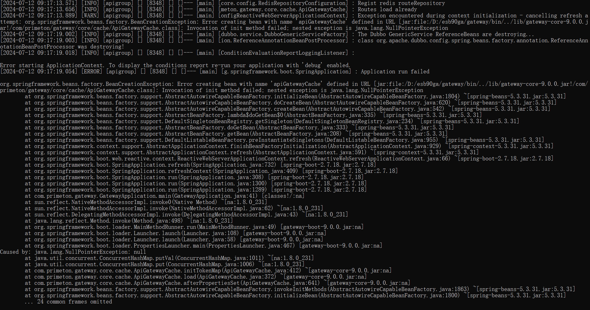 # 升级后,如果90GA继续使用90LA的redis,启动90GA的API-Gateway时出现如下报错:
