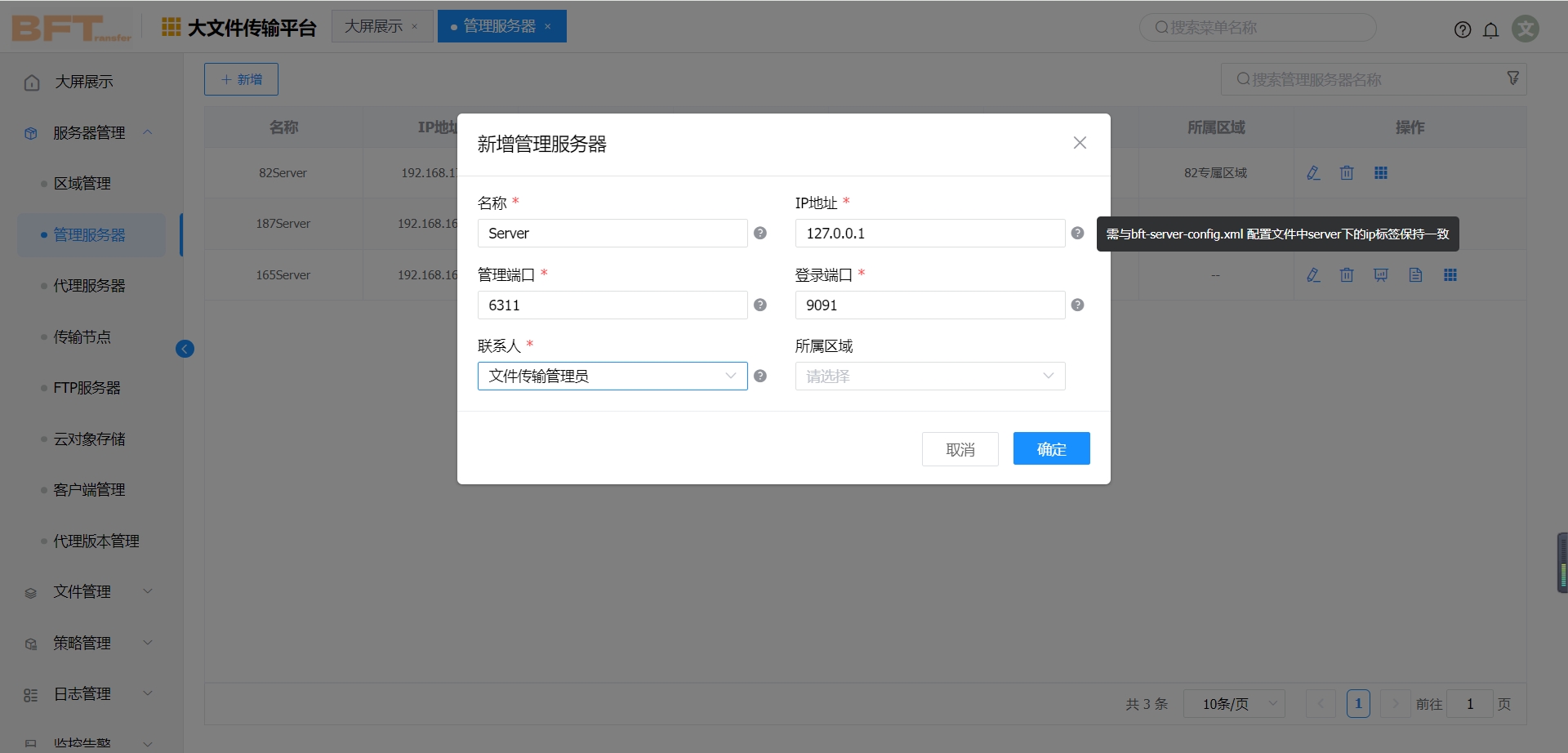 | IP | BFT Server服务器IP,Netty通信IP,即与BFTAgent通信IP |