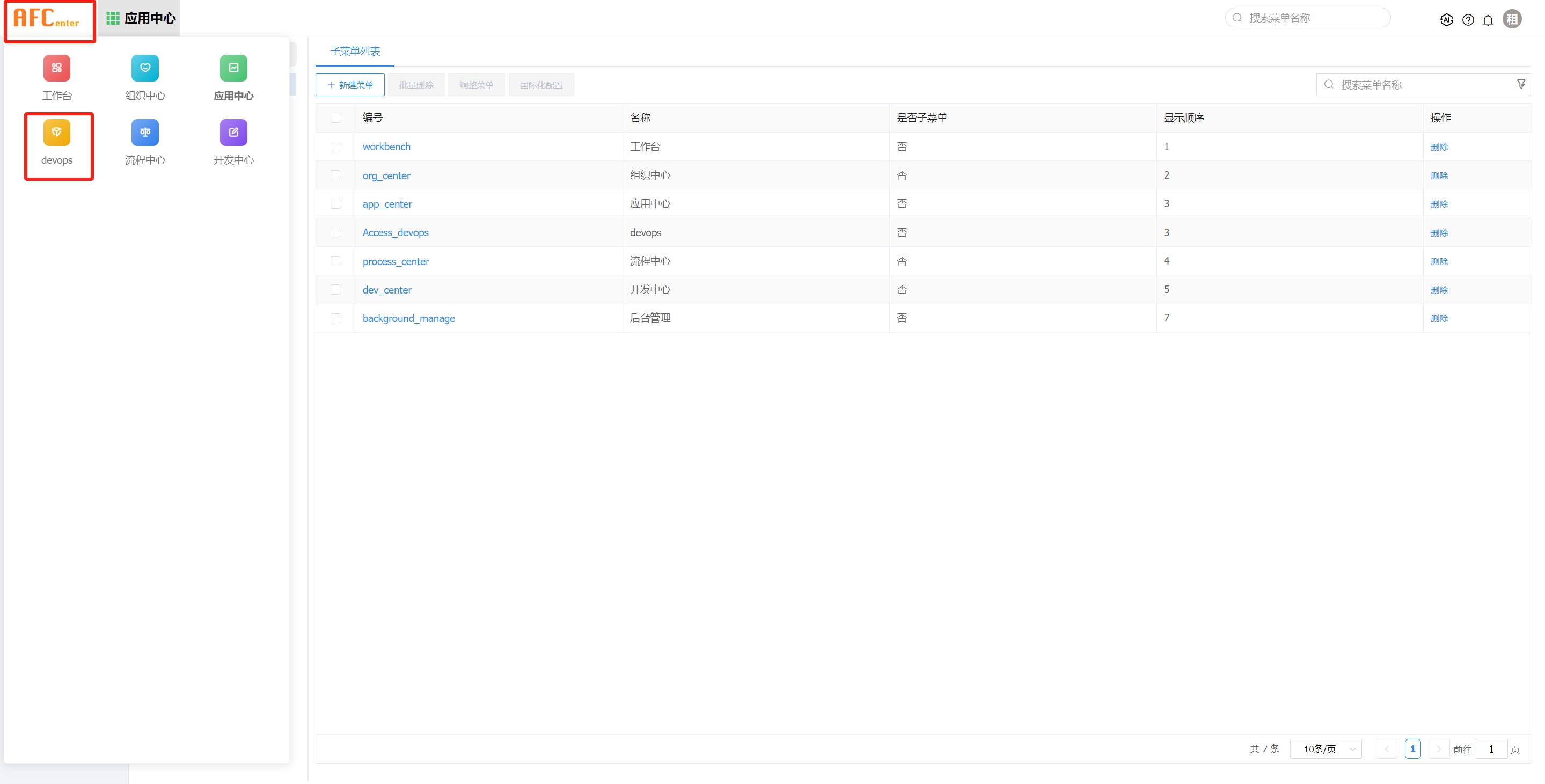 # 配置afcenter服务中跳转到devops