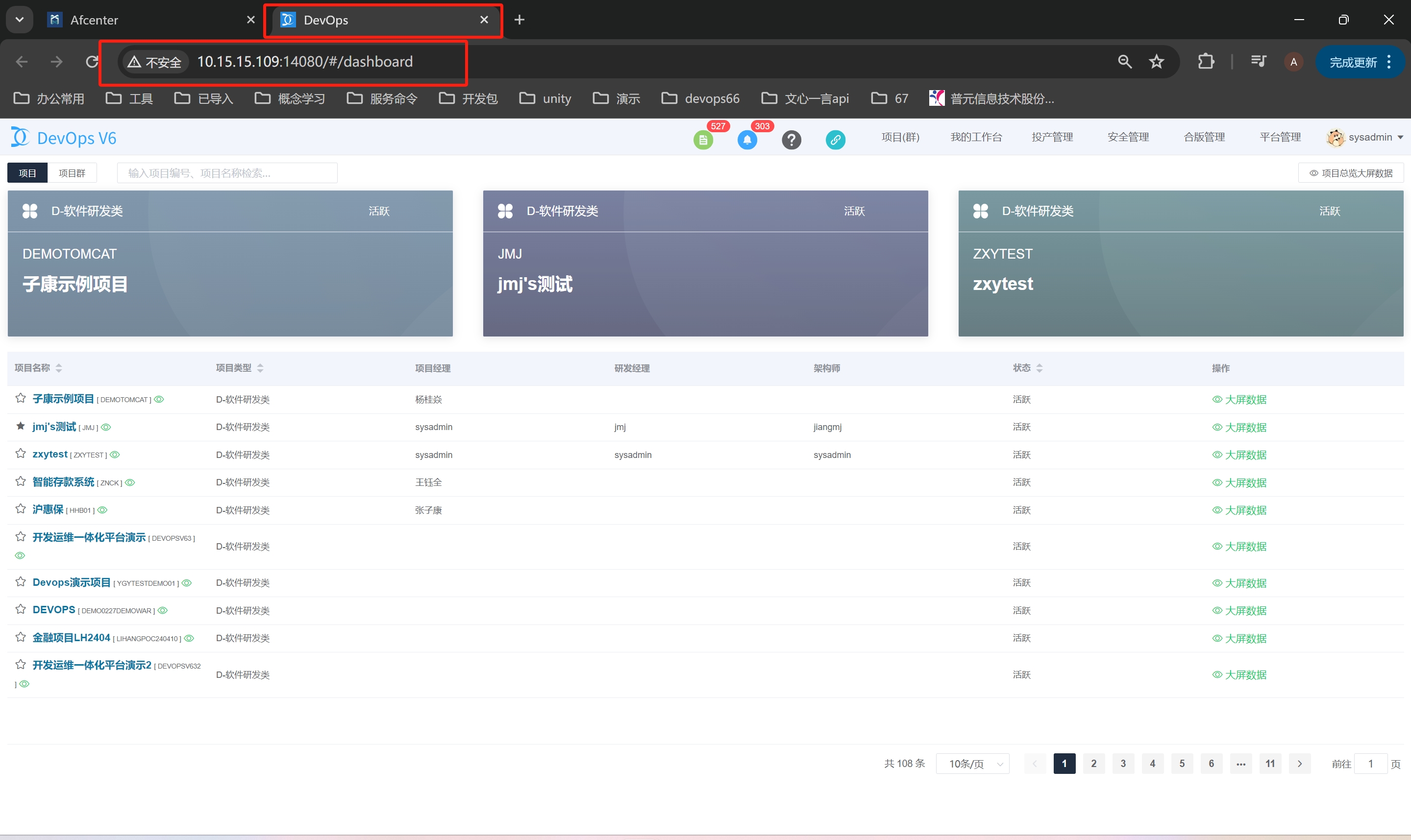 afcenter中的sysadmin[系统管理员]和admin[租户管理员]登录后映射到的都是devops原有的sysadmin[系统管理员]。