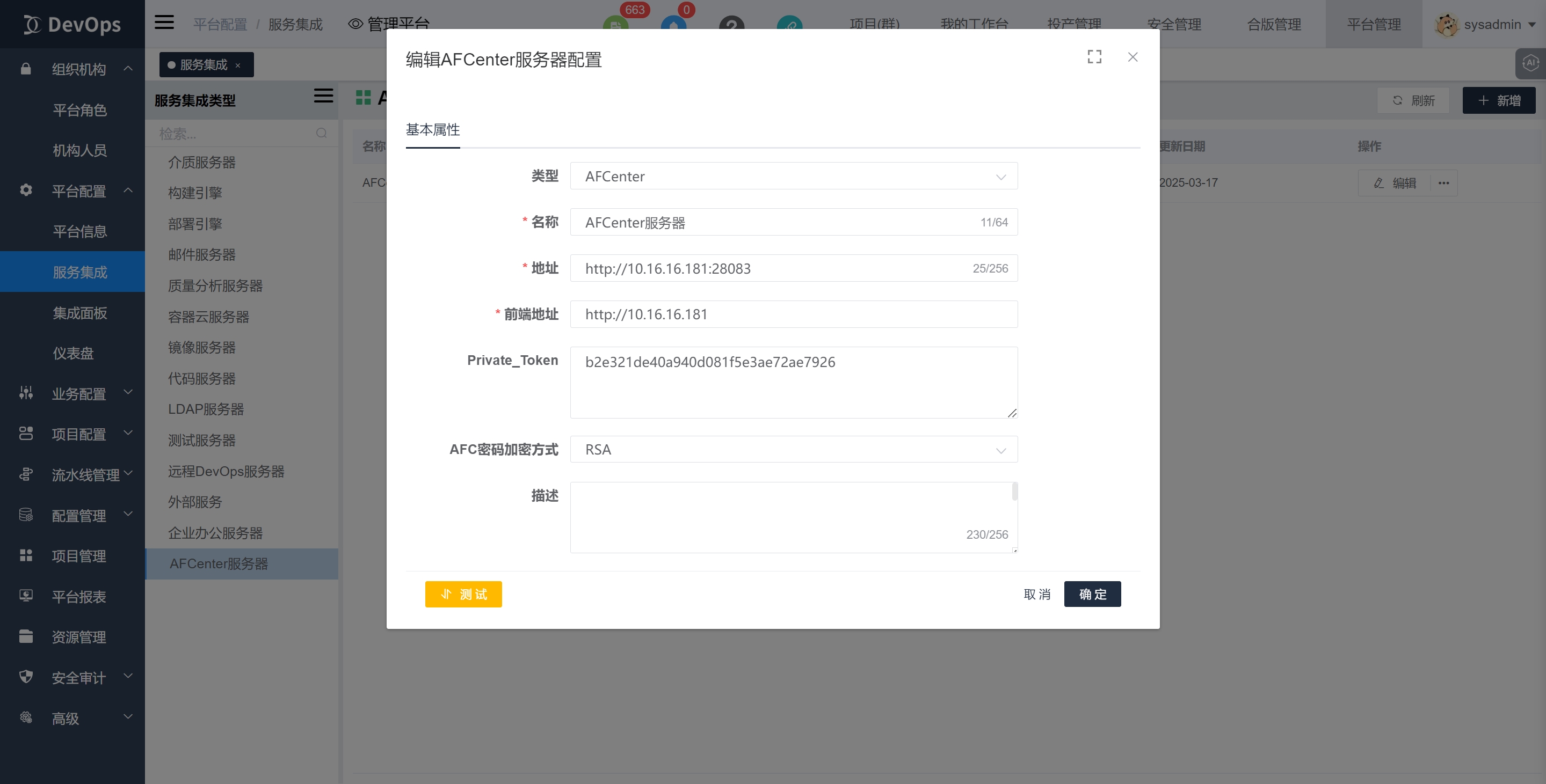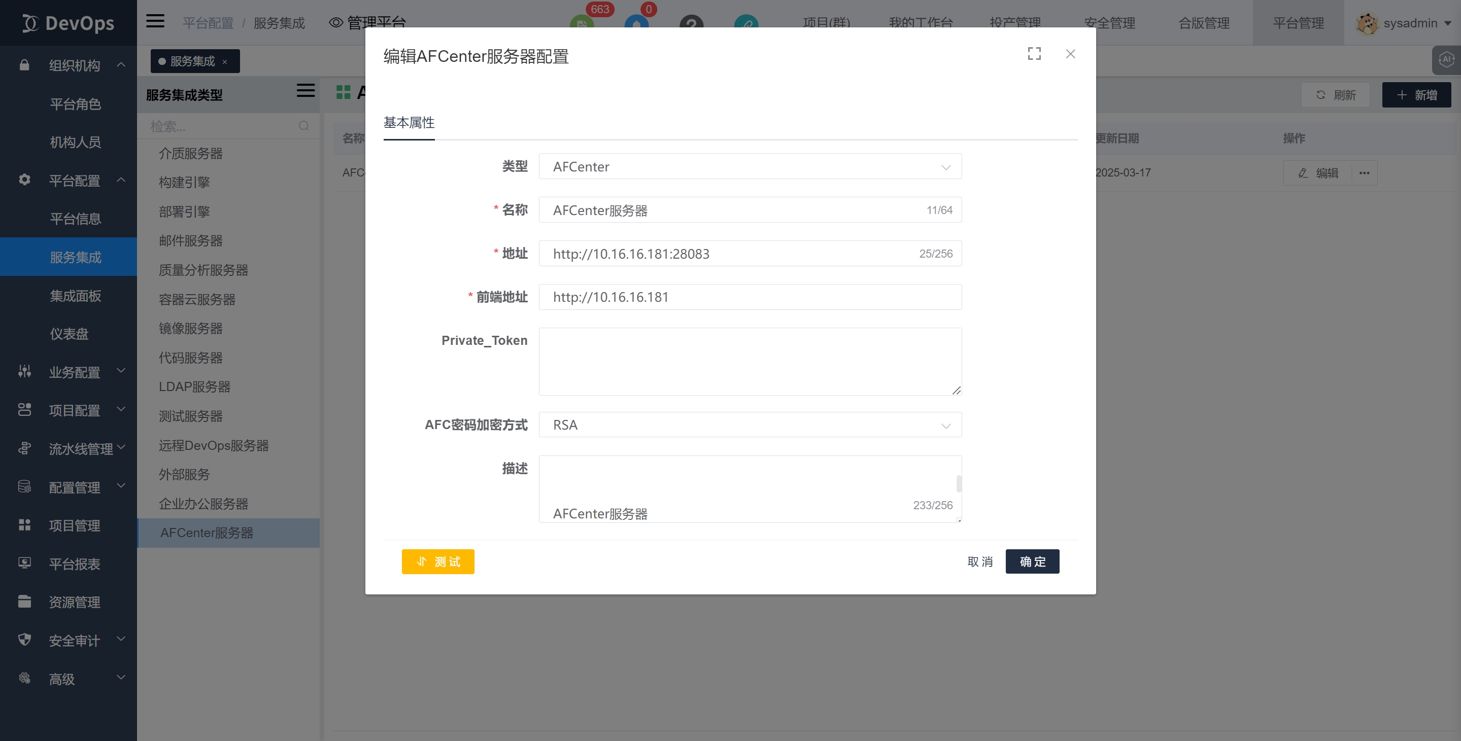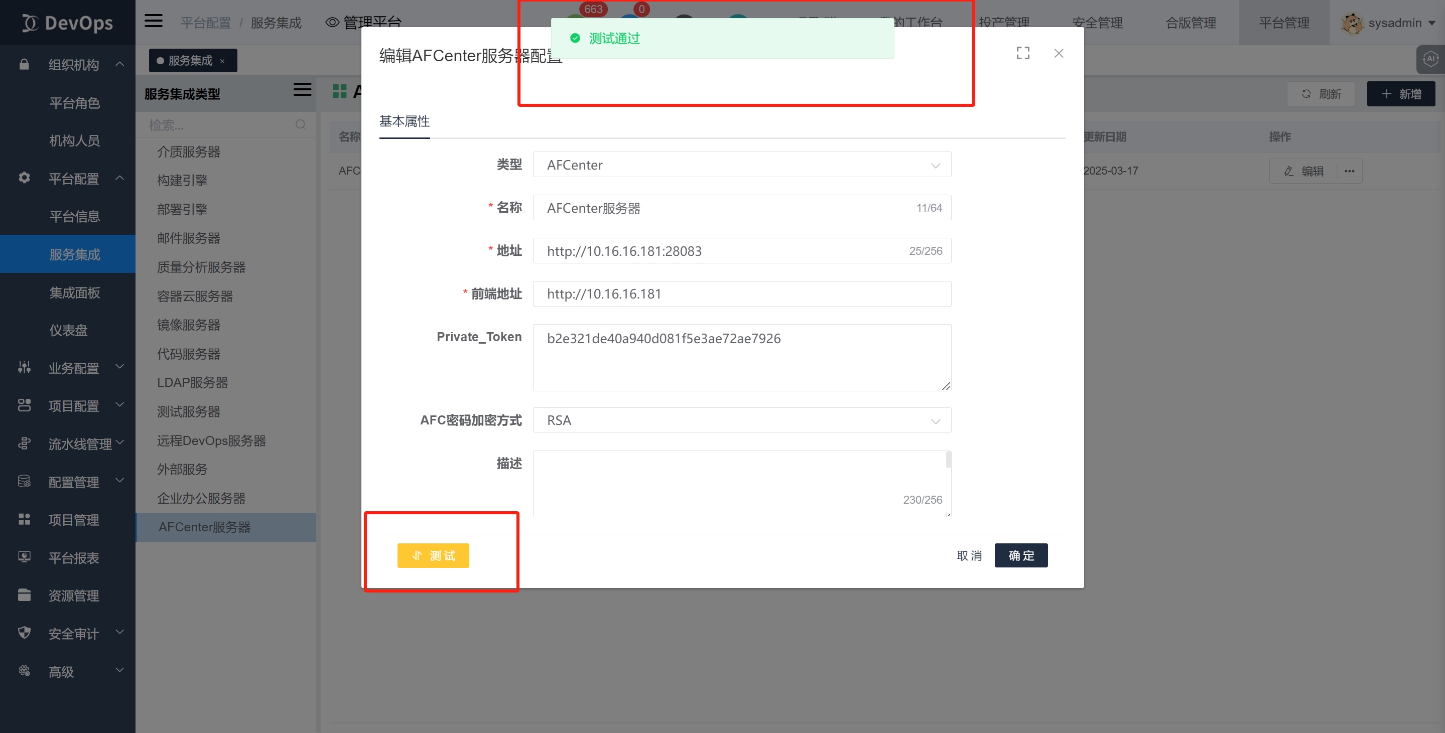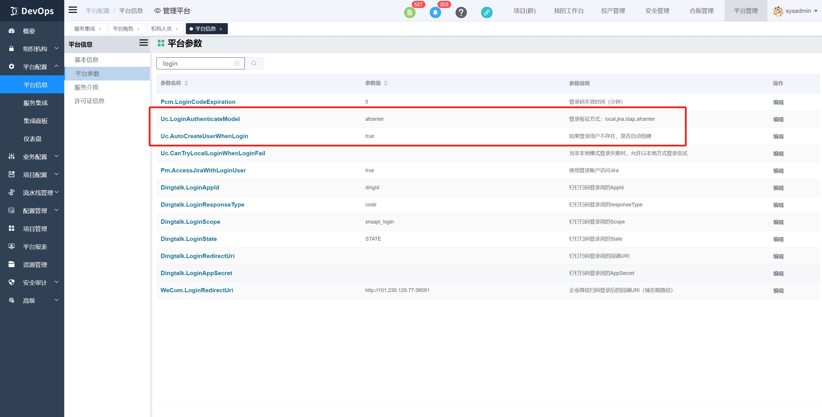 将登录验证方式置为afcenter,之后账户密码登录除了devops原有的sysadmin外,其他都为afcenter账户密码登录。