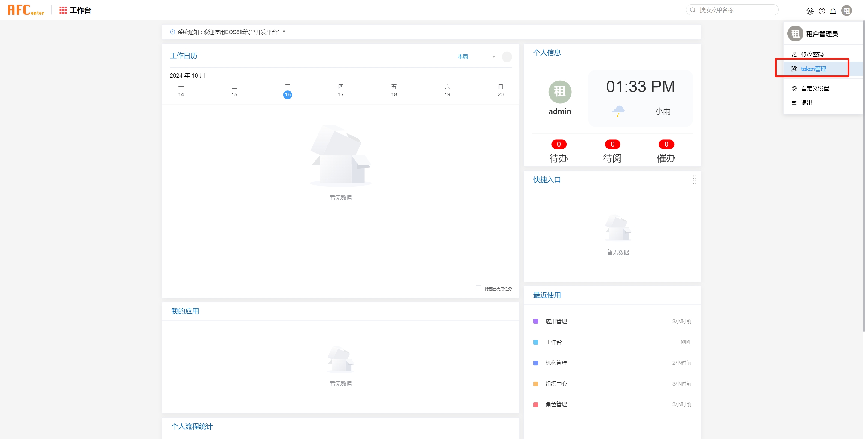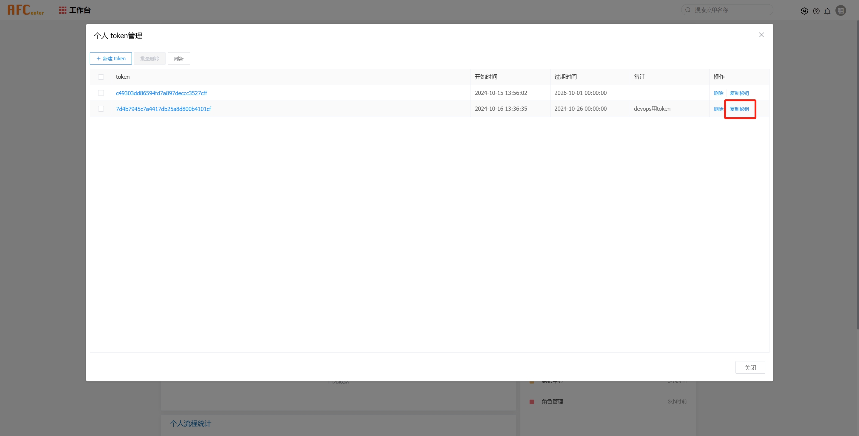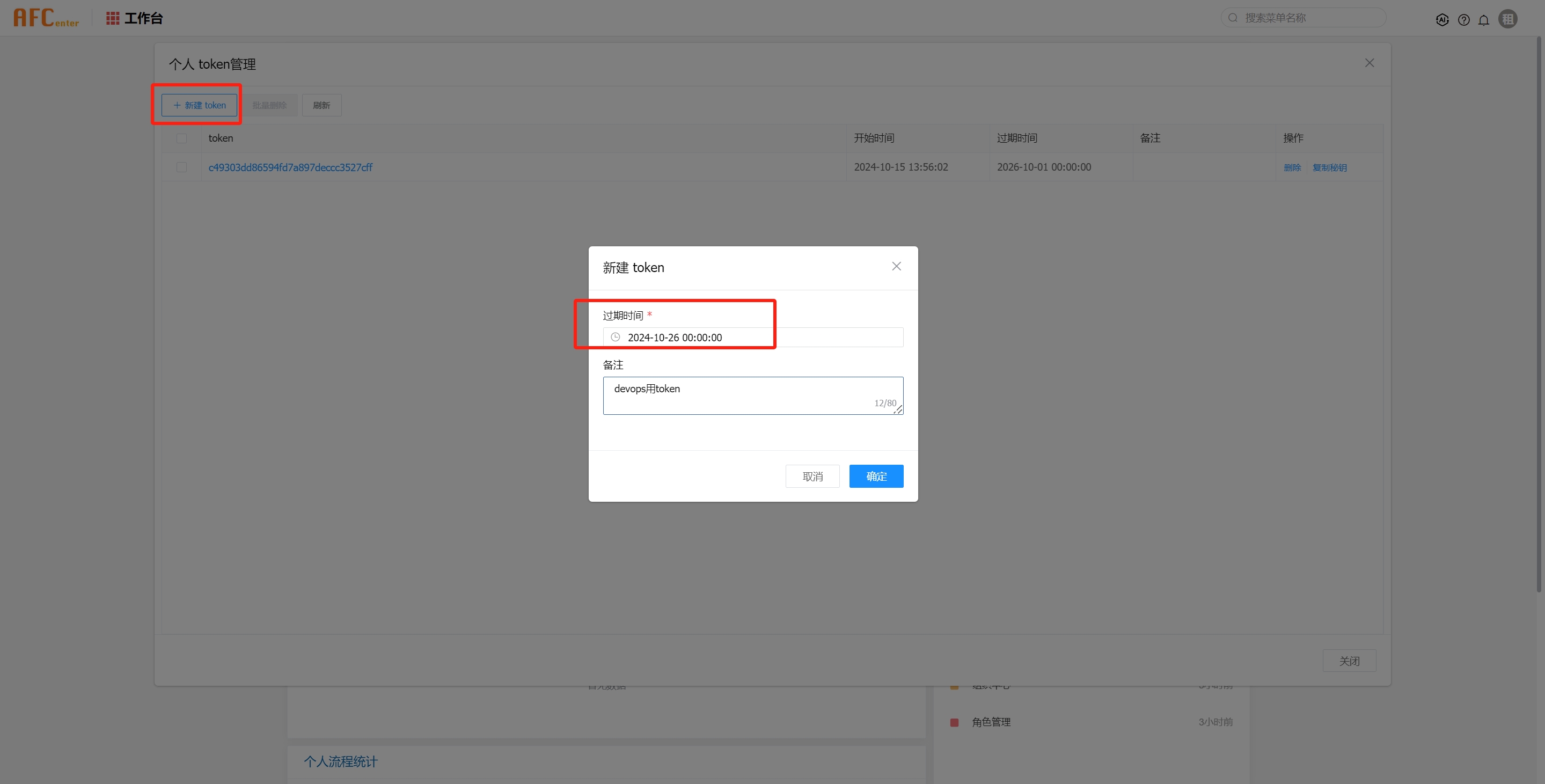 登录AFCenter服务,找到token管理