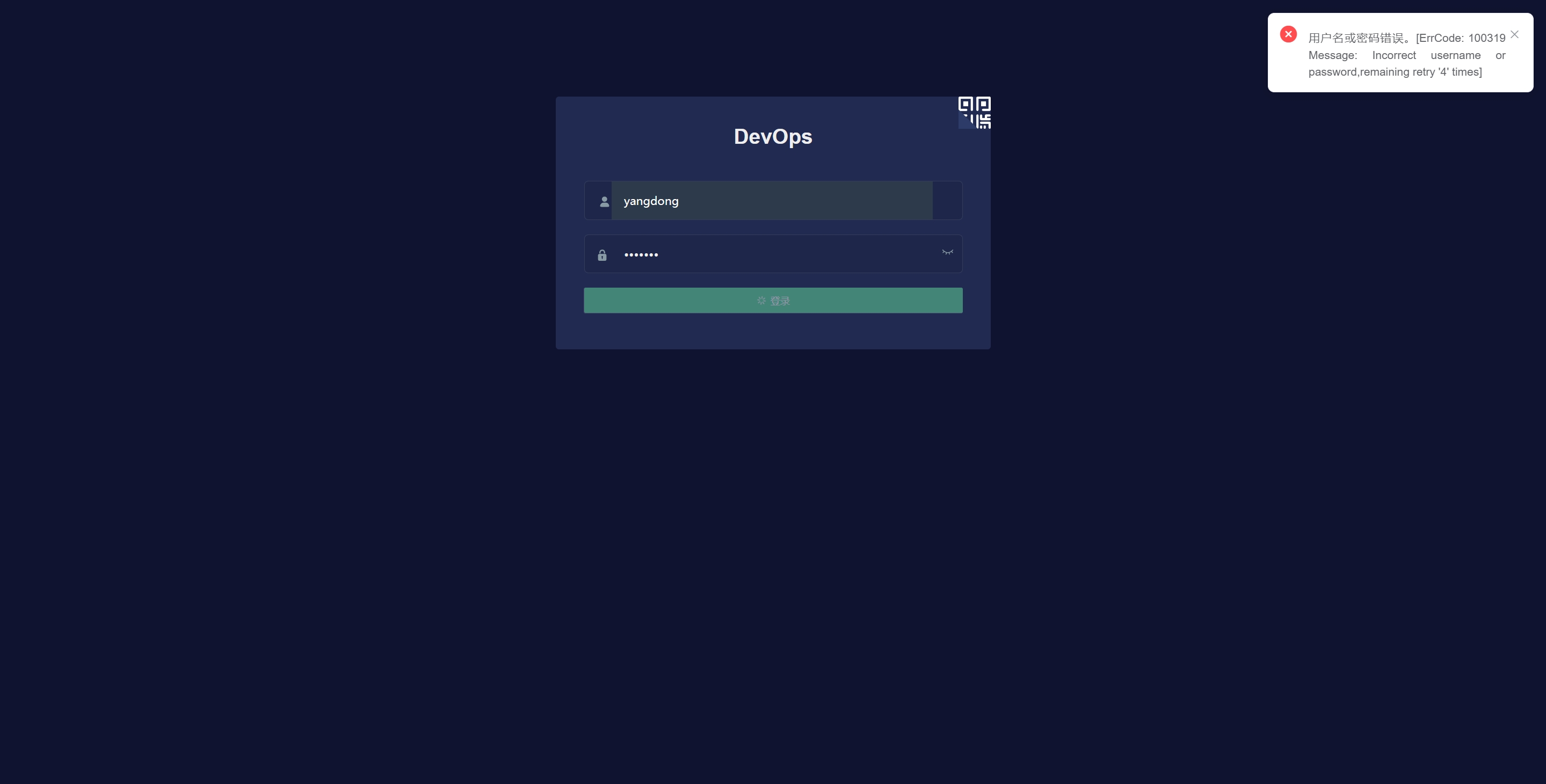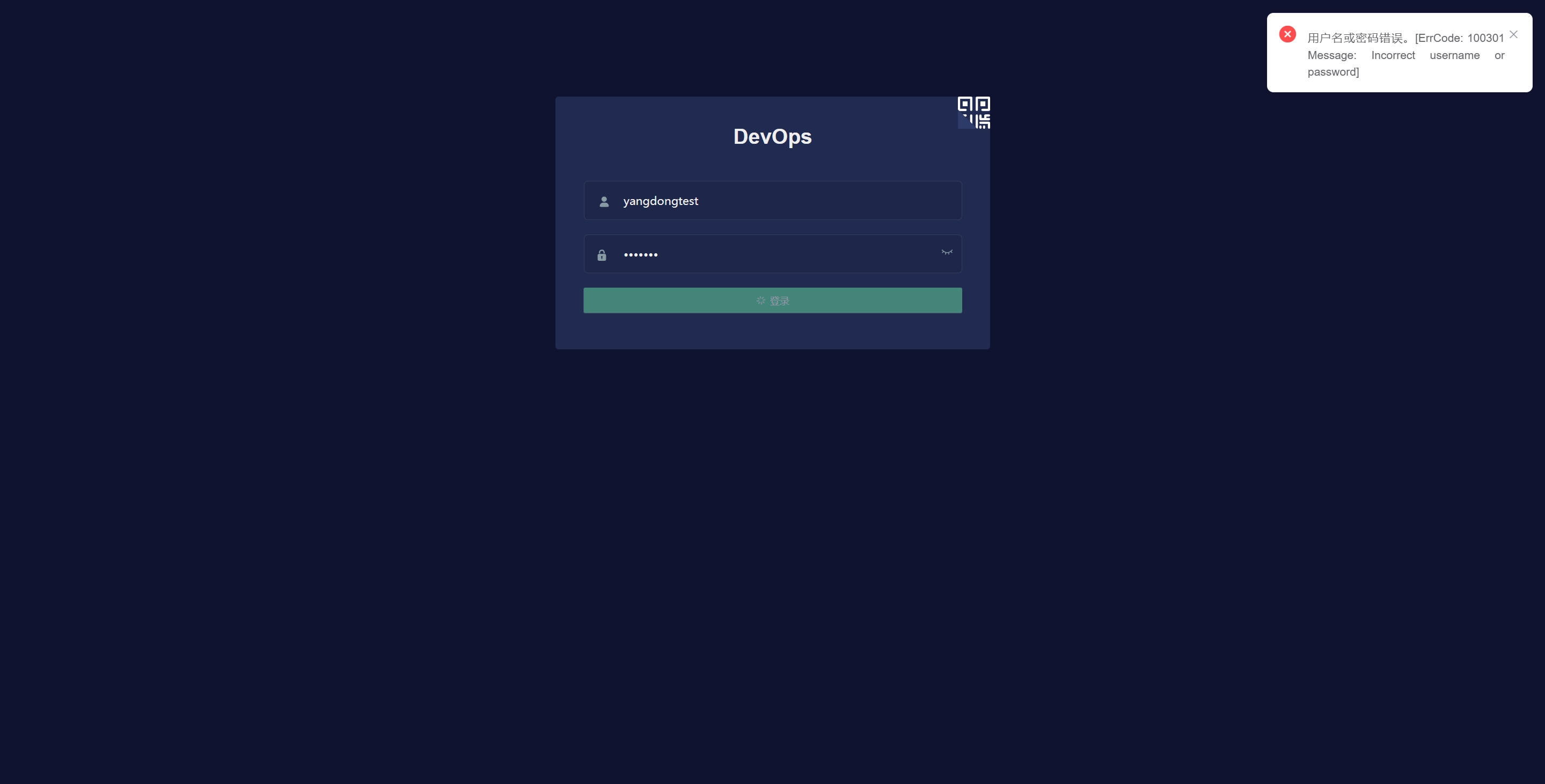 除了AFCenter服务中跳转,配置了平台参数:Uc.LoginAuthenticateModel为afcenter后,登录devops页面也可以通过afcenter账户密码登录。