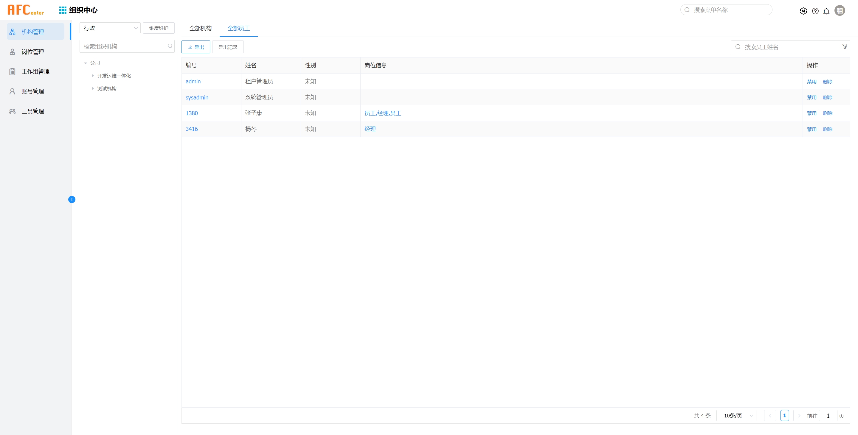 1、afcenter同步的用户和组织机构,默认行政维度组织机构下的[def_dimension]。