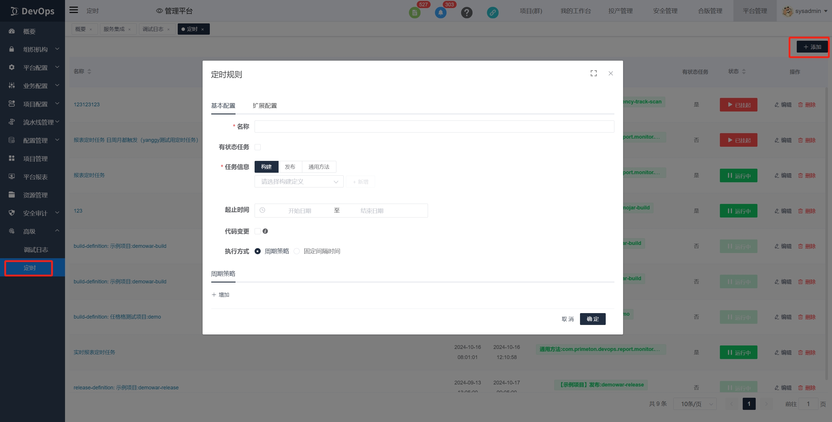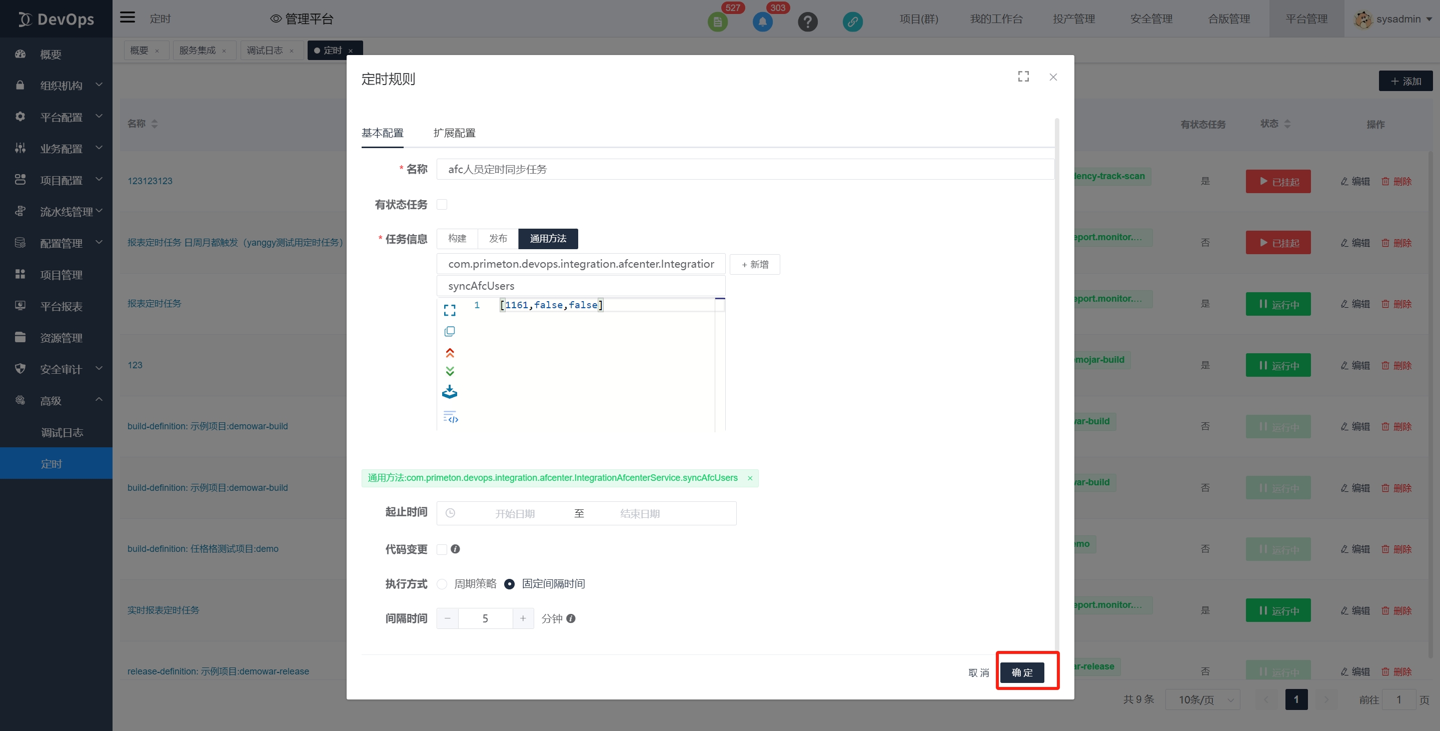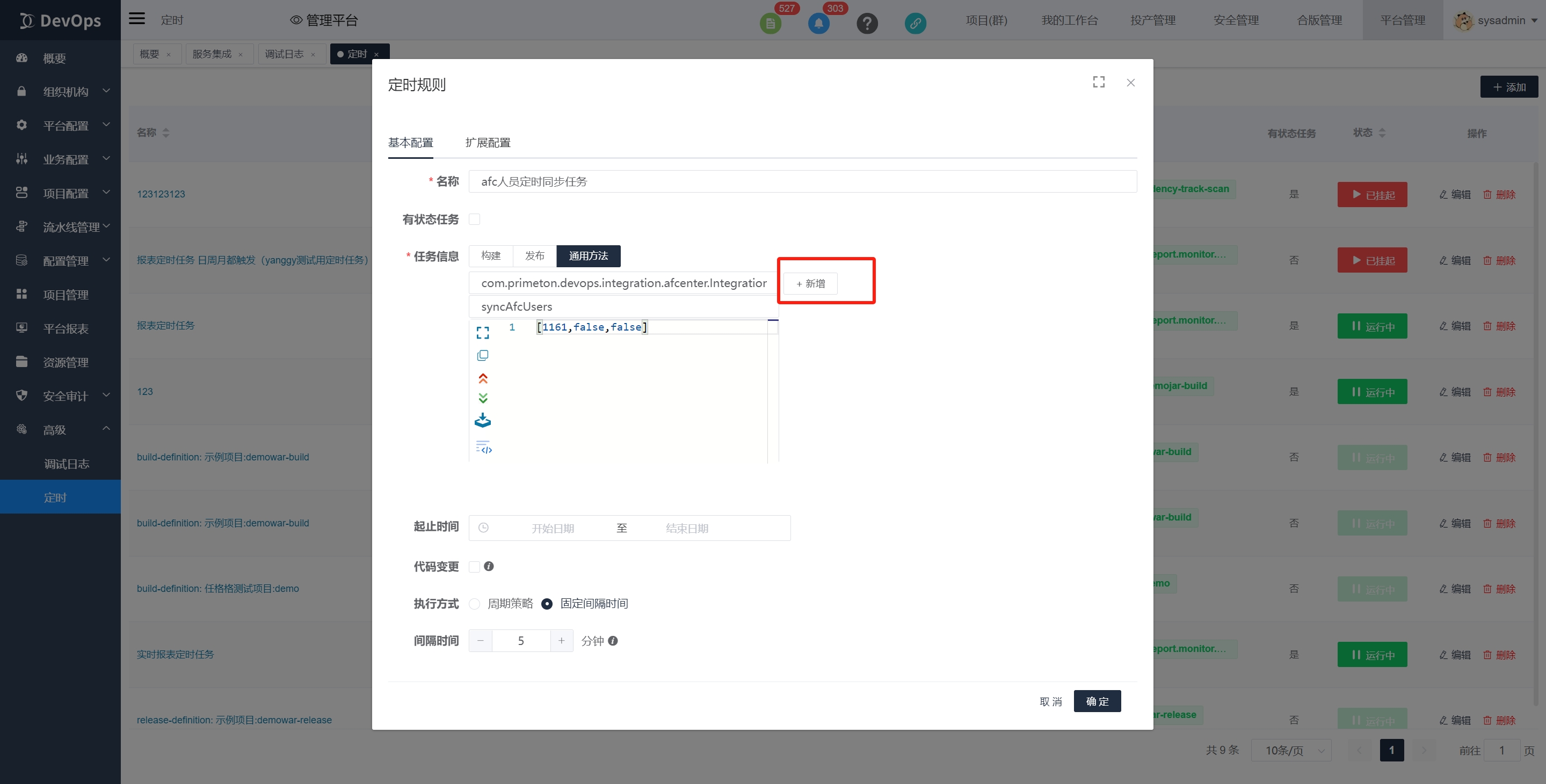 高级》定时》新建 新建一个定时任务