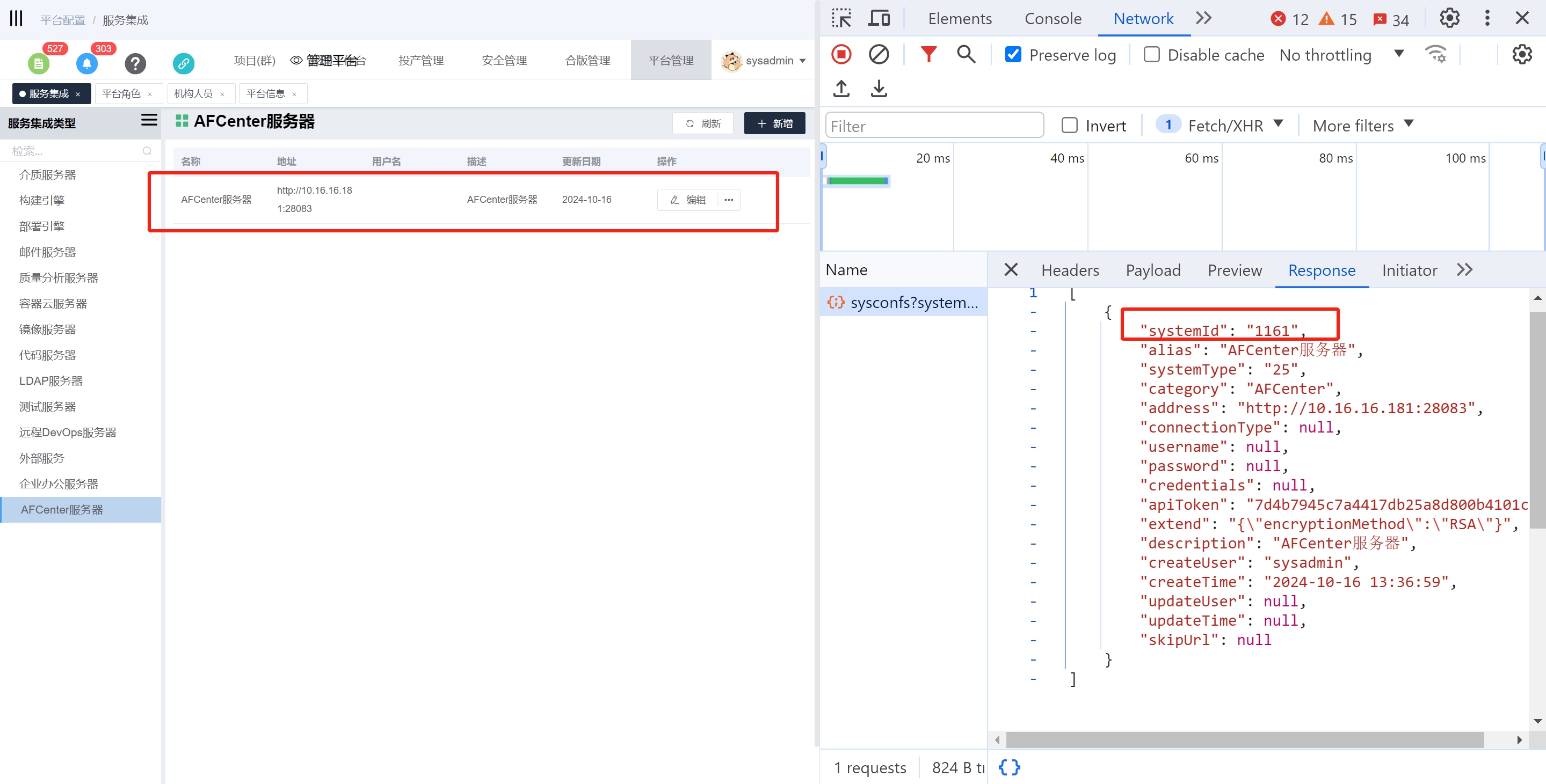 这里token需要从对应AFCenter服务器中获取