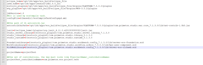 build.xml使用的相关变量,包含eos相关包,jdk版本,项目名称,构件包名,等等