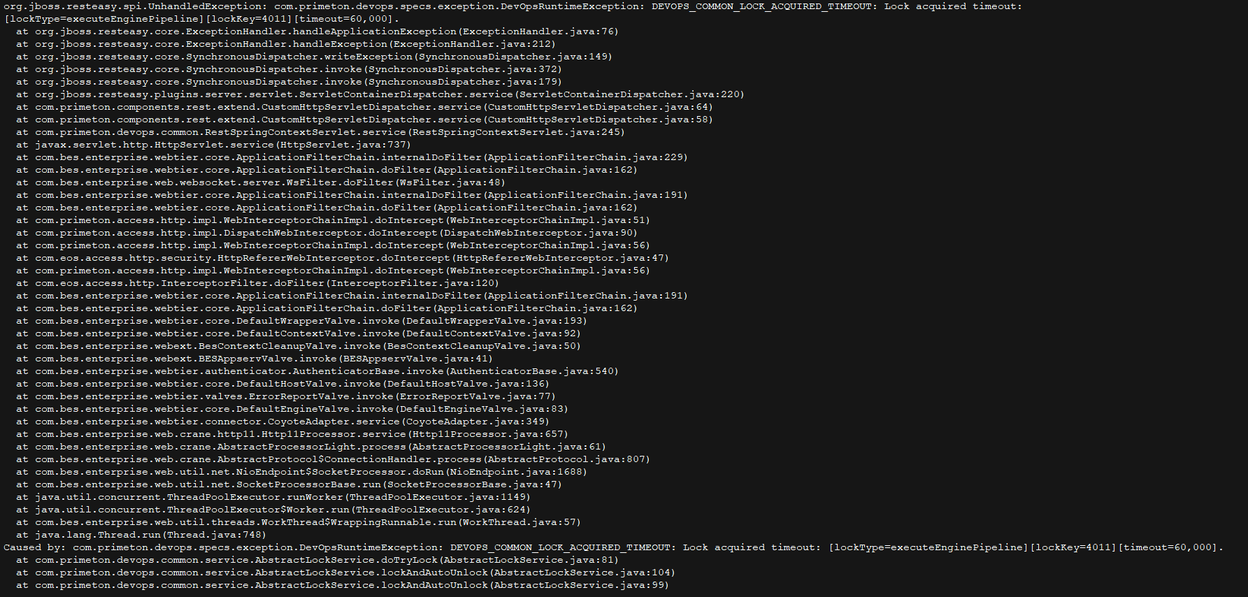 情景:在DevOps平台使用过程中,如意外遇到服务宕机导致的事务锁未释放的情况,体现为操作平台某些功能时会报错锁超时。
