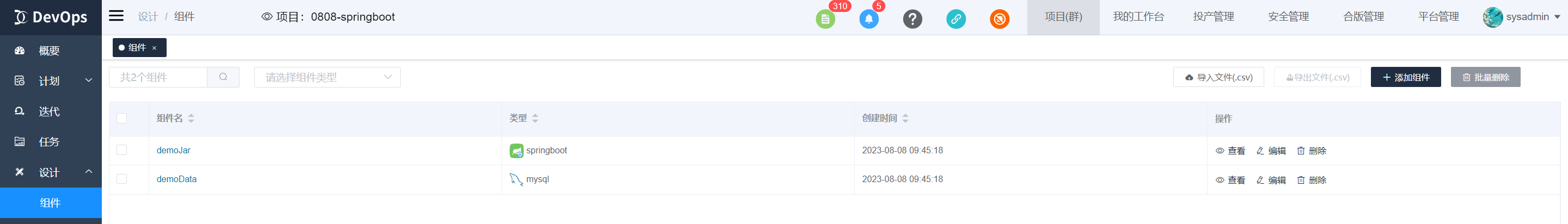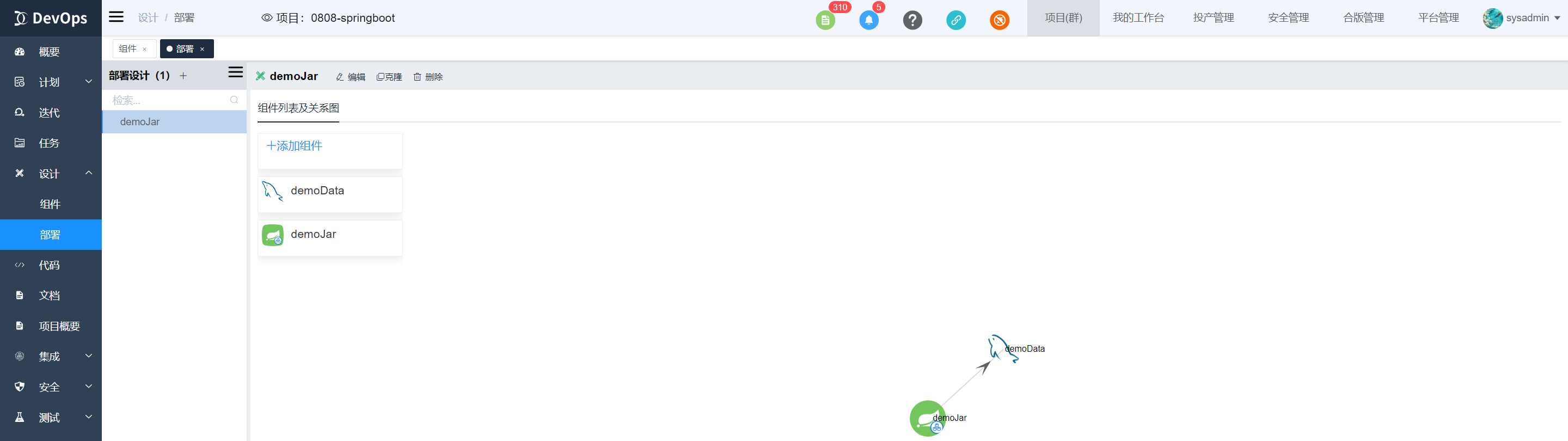 创建demoJar名称的springboot类型程序组件和demoData名称的mysql类型的数据组件