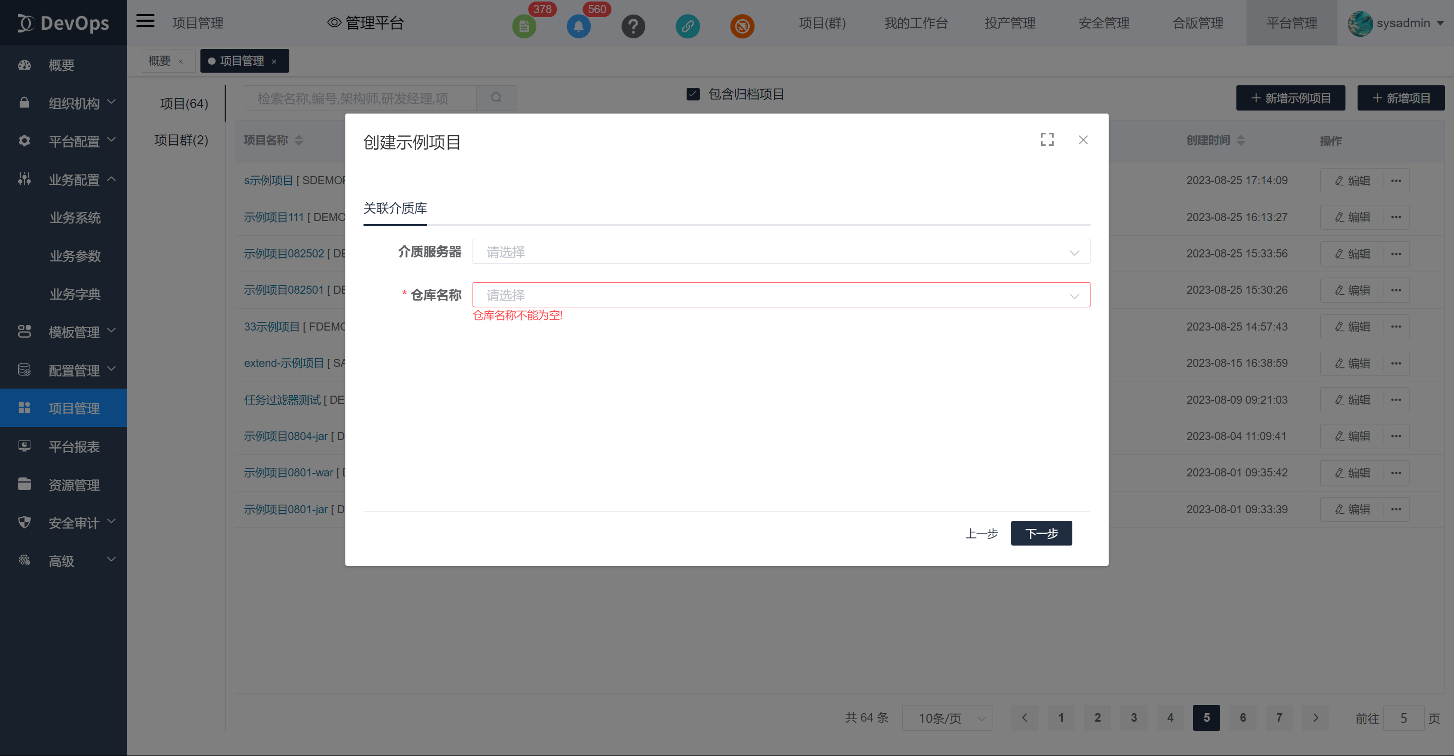| artifactRepositoryId | 如果创建项目时关联了介质库,此处会默认填充对应的介质库ID | 介质仓库 | 需要 |