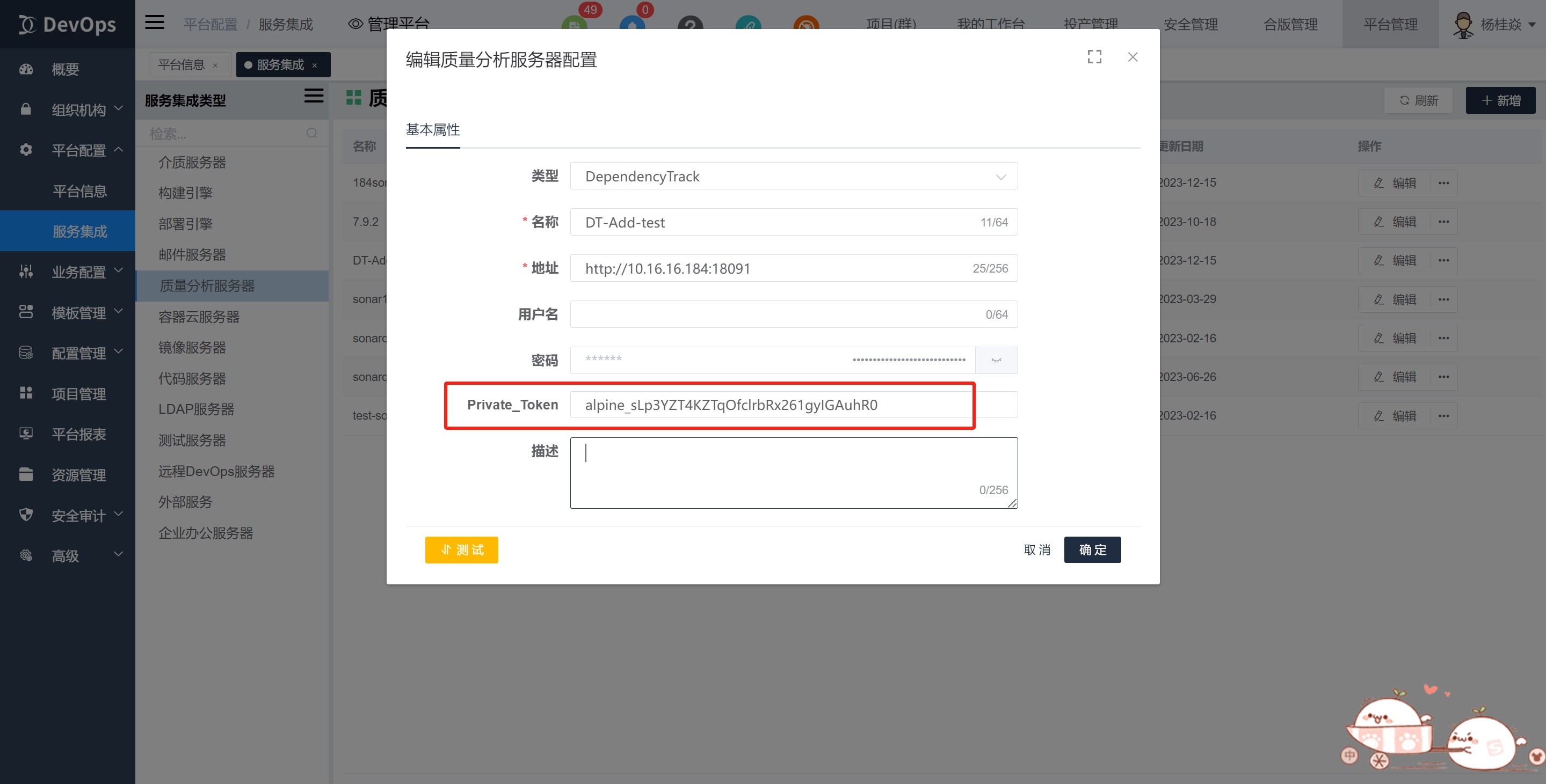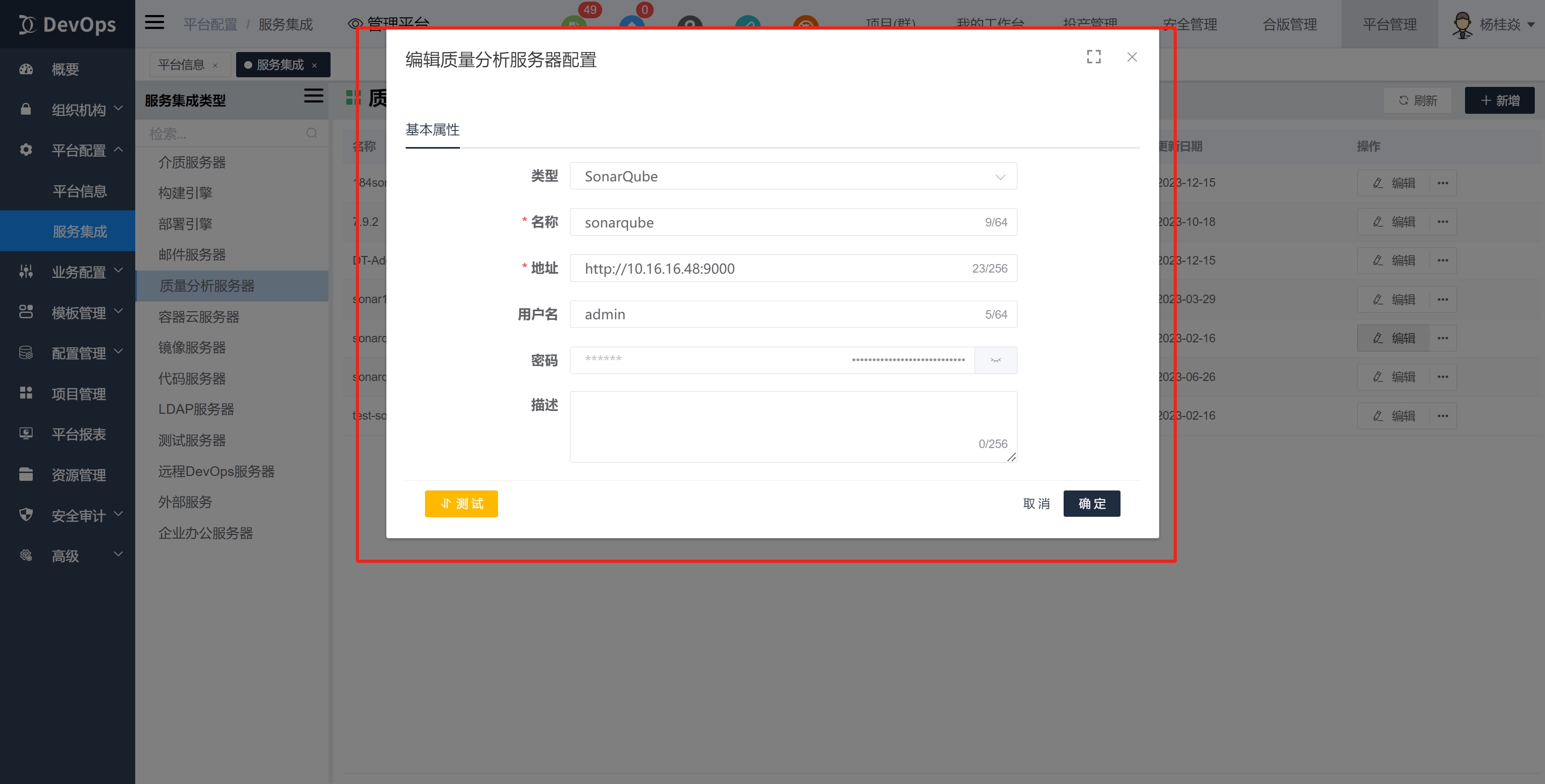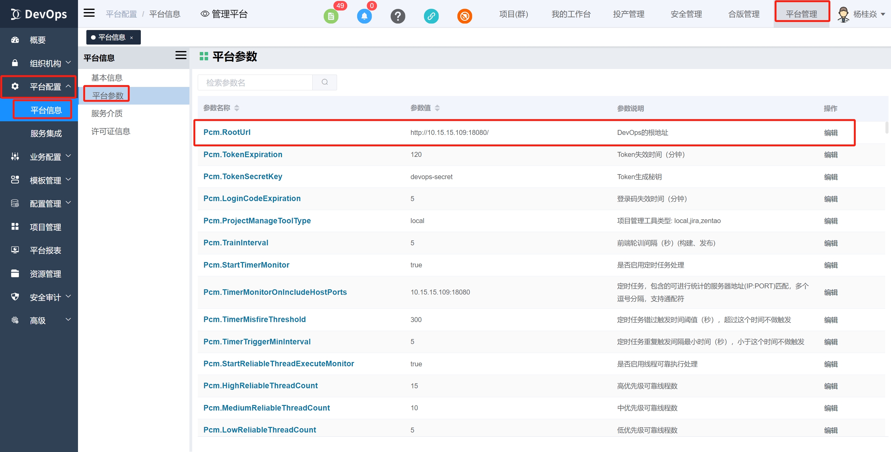 平台管理》平台配置》平台信息》配置DevOps的根地址