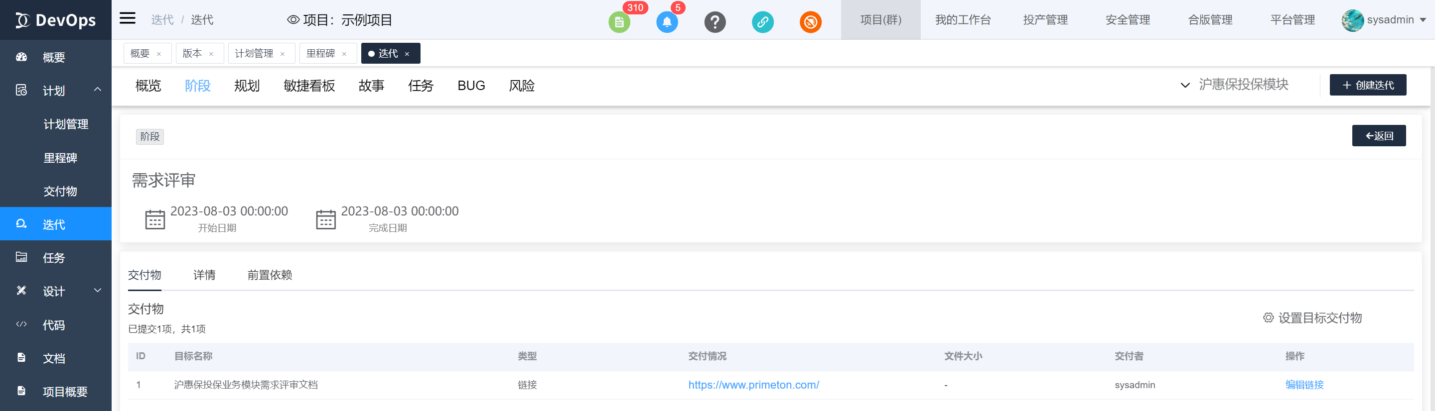为进行中迭代的需求评审阶段和上线阶段创建交付物