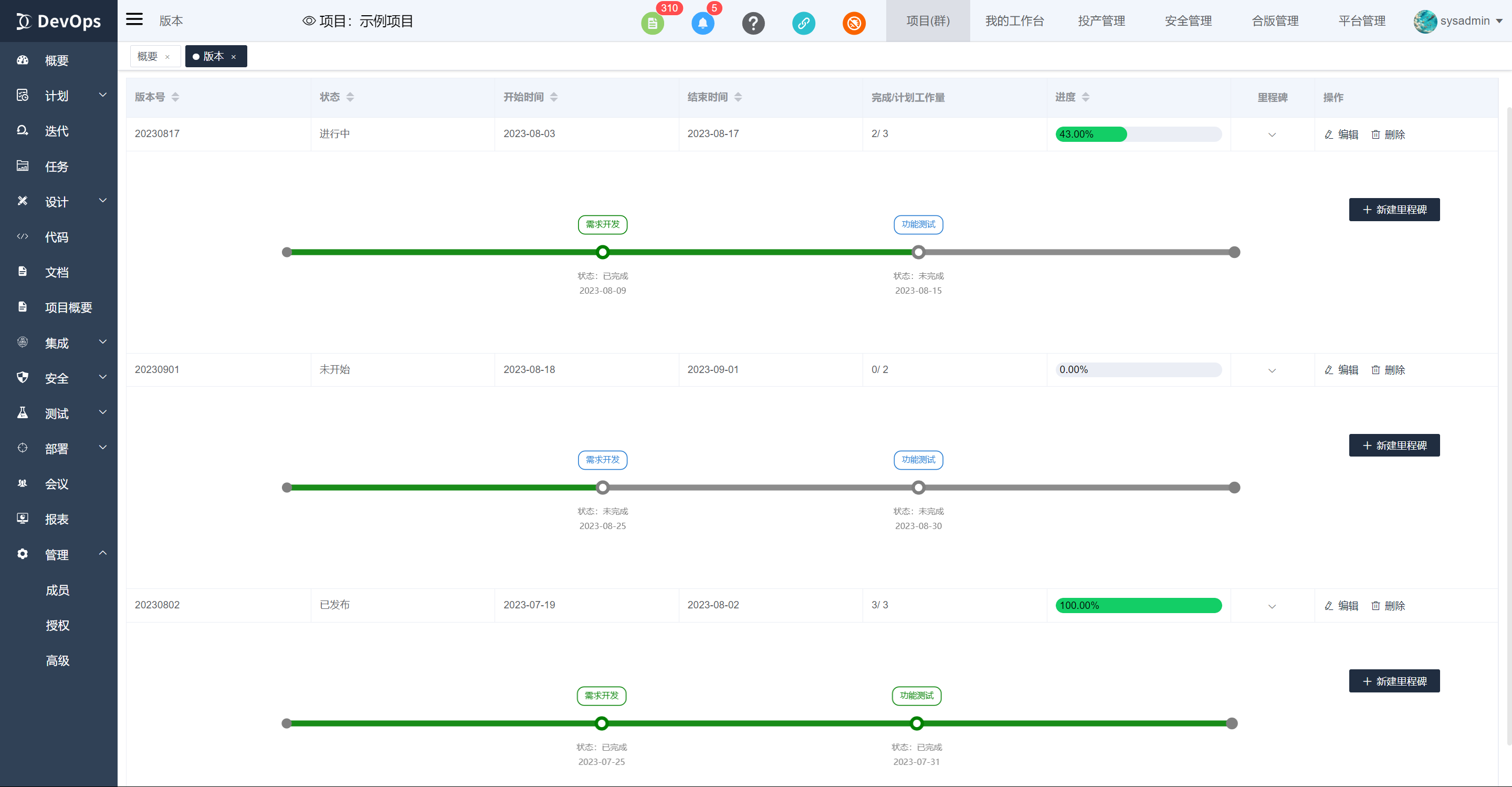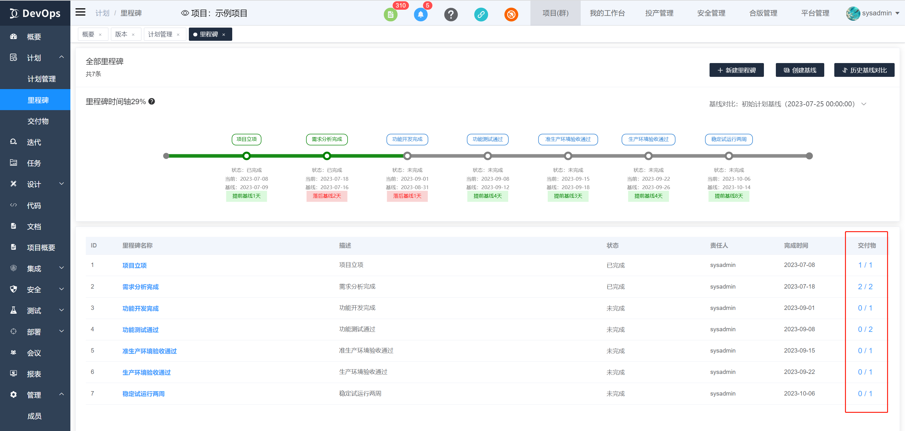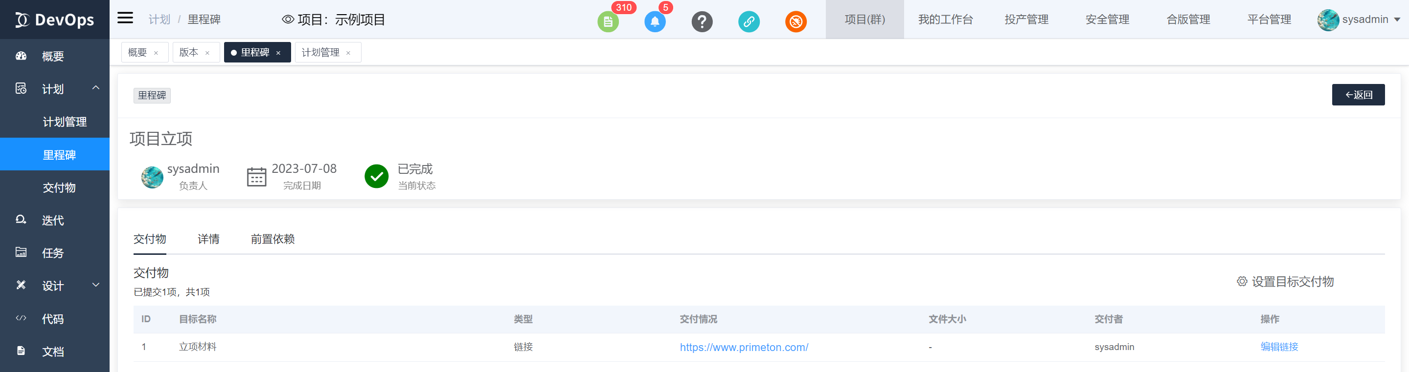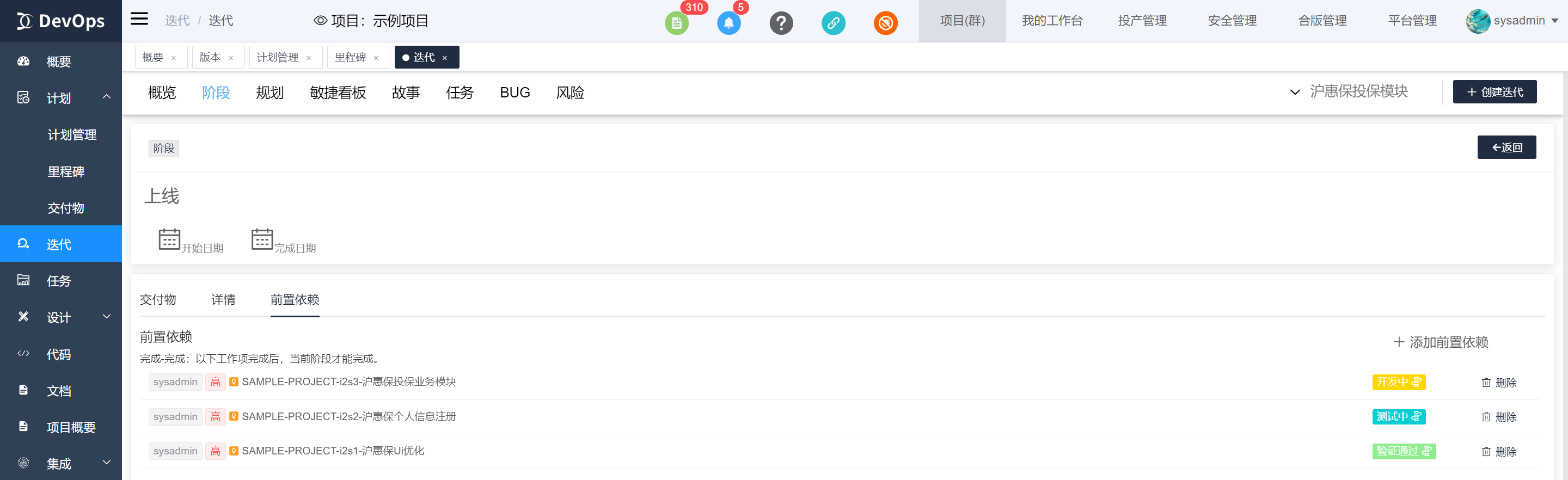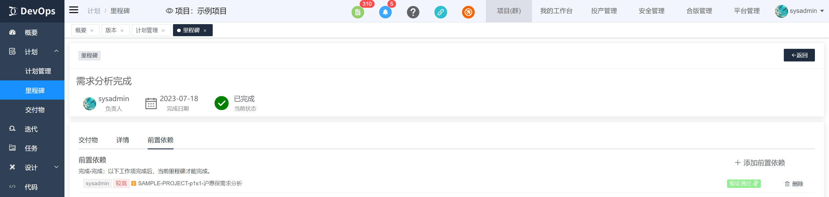 为里程碑项目立项阶段和需求分析完成阶段创建工作项前置依赖